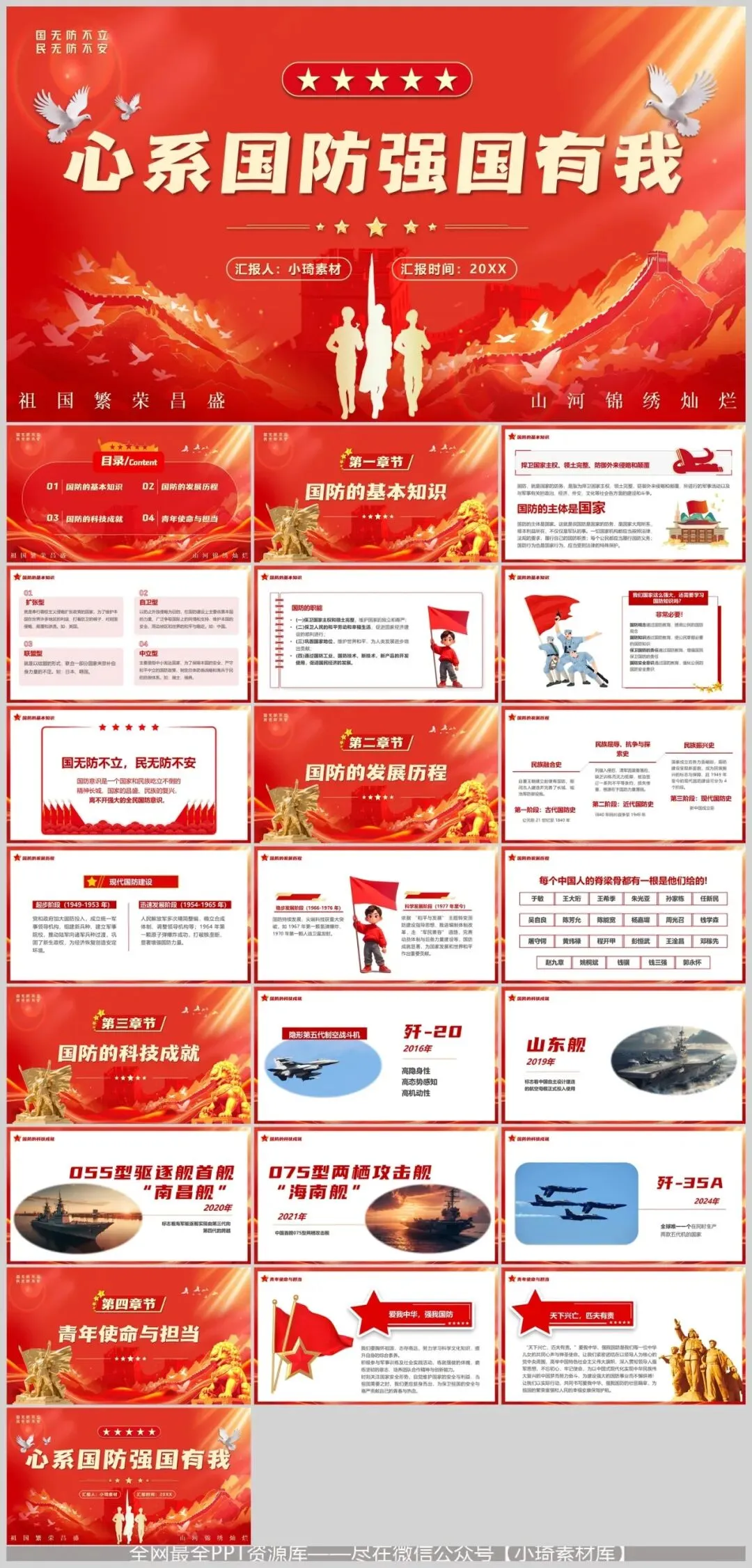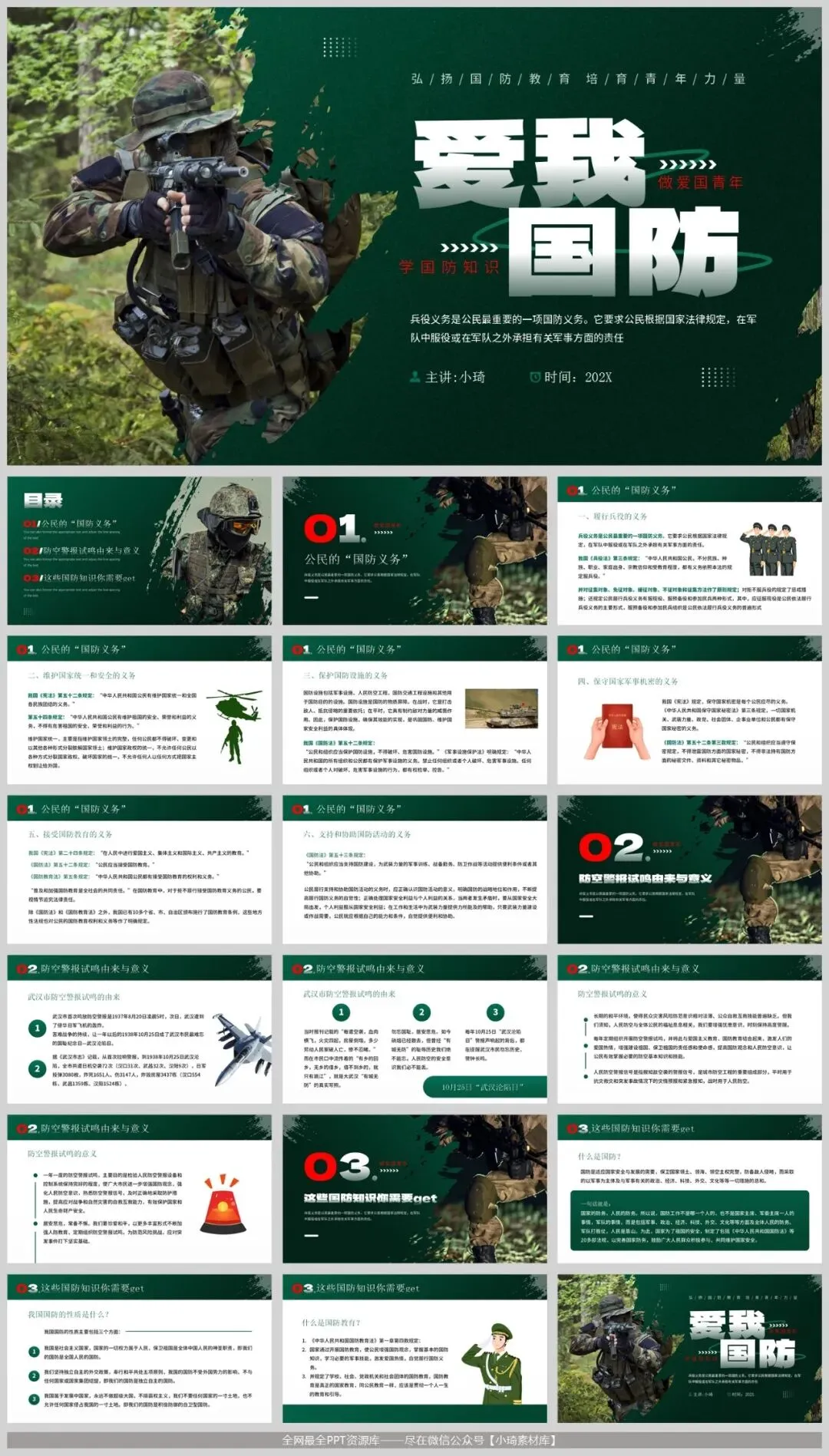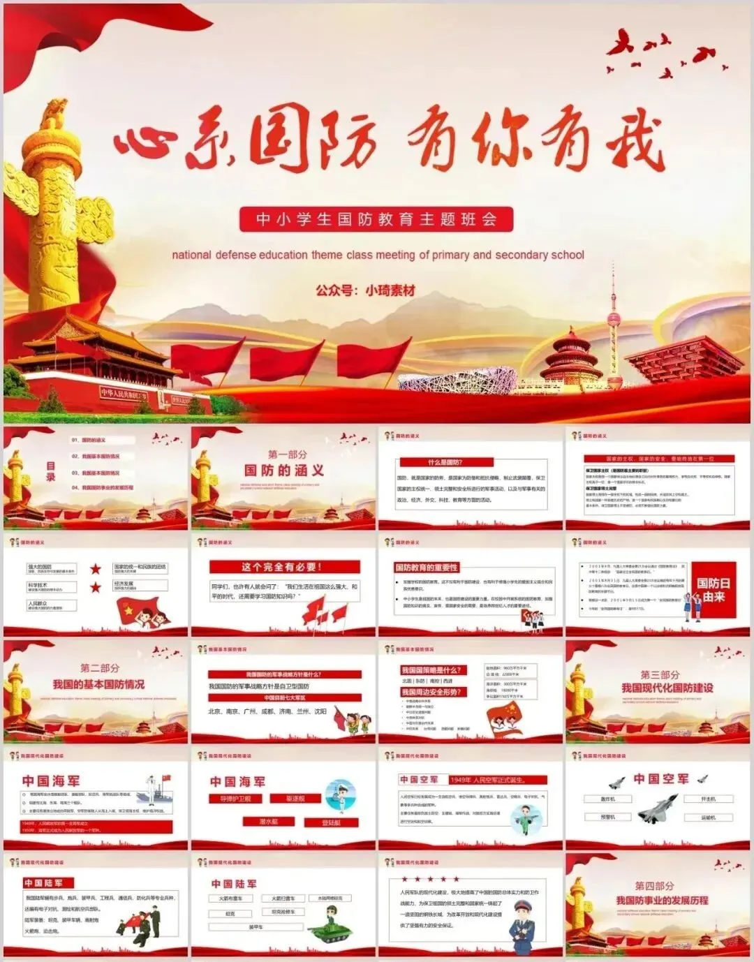 公众号改推送机制啦!点左上角蓝字小琦素材库,设置星标★,好资源不错过! 国防教育是为捍卫国家主权、领土的完整和安全,防御外来侵略、颠覆威胁的建设与斗争,对全民传授与国防有关的思想、知识、技能的社会活动。