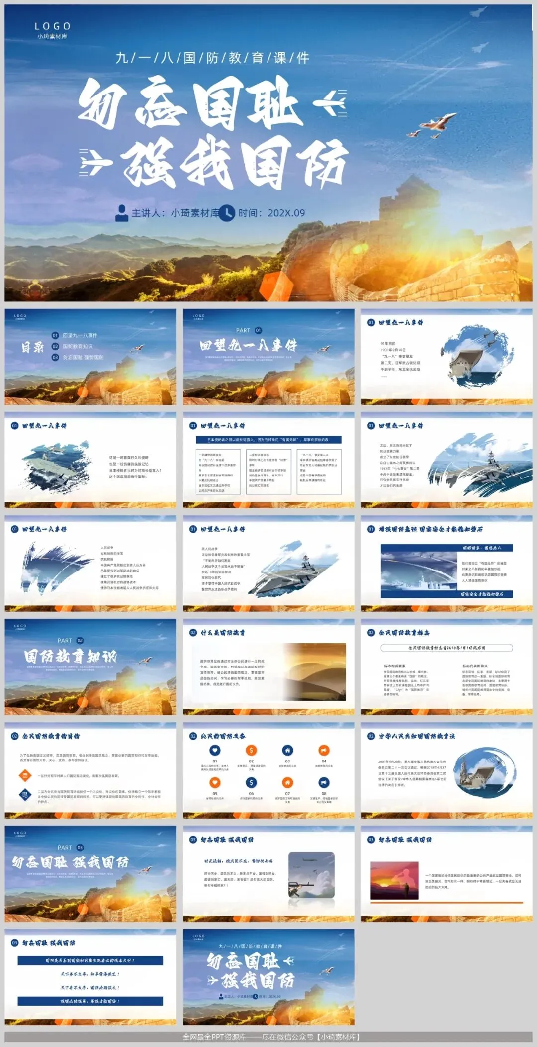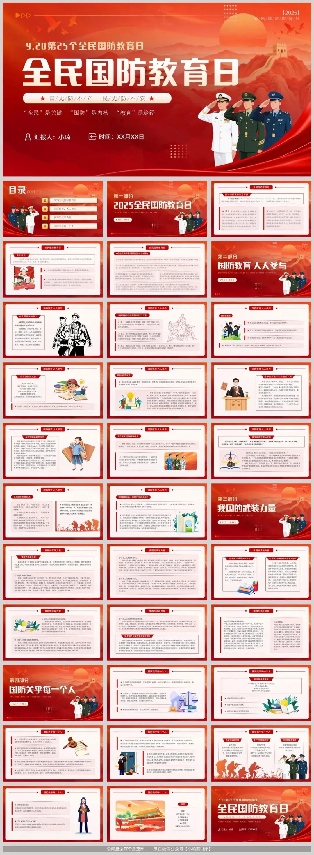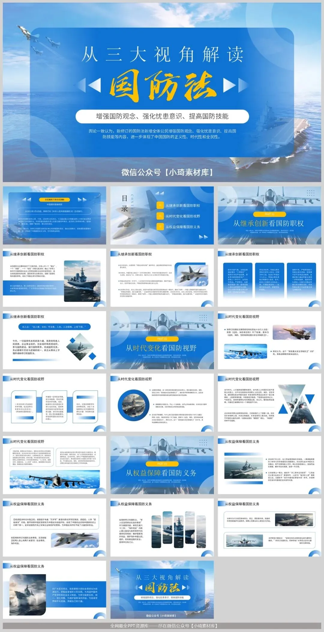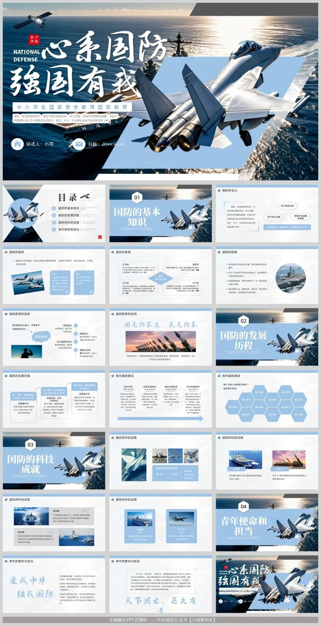 公众号改推送机制啦!点左上角蓝字小琦素材库,设置星标★,好资源不错过! 国防教育是为捍卫国家主权、领土的完整和安全,防御外来侵略、颠覆威胁的建设与斗争,对全民传授与国防有关的思想、知识、技能的社会活动。