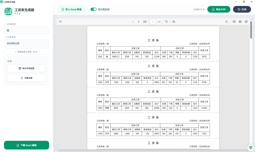 工资条生成器 V1.3 来了——