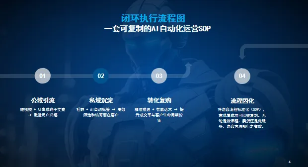 公域引流(短视频+AI文案)→ 私域沉淀(社群+AI标签)→ 转化复购(精准推送+智能话术)