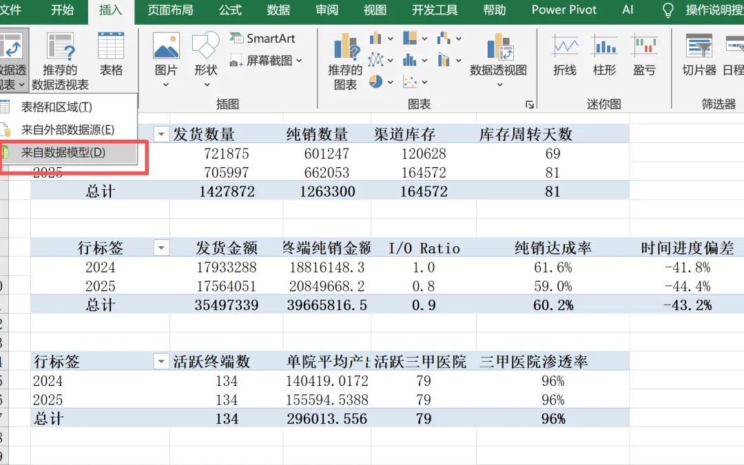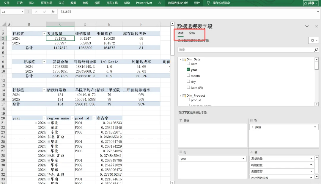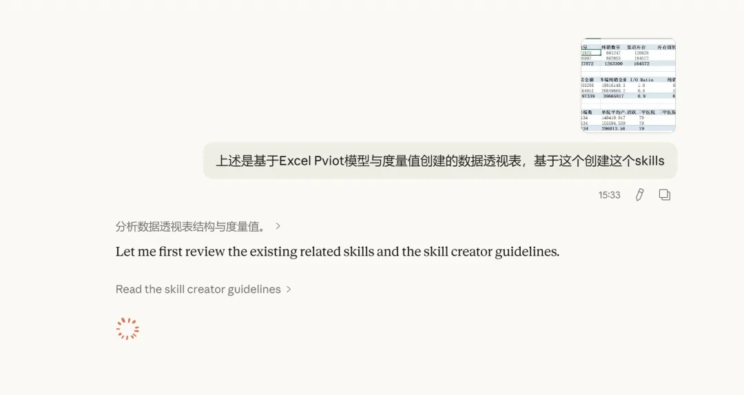 如下图是通过Excel数据建模完成的销售管理数据透视表分析,数据源基于数据模型接下来演示具体的分析过程,首先在Excel插入数据透视表,这里选择数据模型,因为我们的数据已经在Power Pivot中完成的多表关系,这里这里就搭建起来的数据模型,完成之后,在数据透视表插入字段与计算值,这里的计算值是我们创建的度量值,在Excel中可以完成,同时注意上方数据透视表字段的活动与全部按钮,活动表示目前已用的数据表,全部表示模型后面的所有的表,上述的计算值来自如下,这里的值就是基于数据模型计算出来的,如下图这样三块内容就有了,数据模型,数据计算,数据透视表,完成上述的数据分析实际过程。接下来将上述过程可以给AI Claude Skills,让它进行分析与生成PPT的工作,如下图然后Claude AI会生成一段skills,基于Claude生成的Skills可以在skills页面中修改,最后基于Skills生成对应的PPT分析报告,这就是Excel+PPT在AI场景的具体应用,后面的文章会逐步展开。