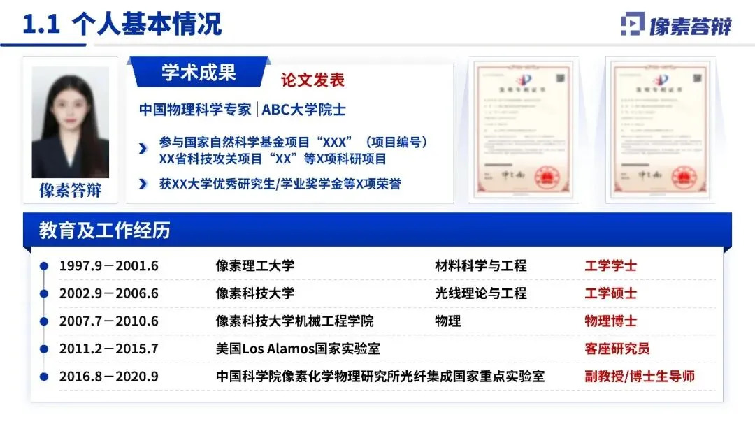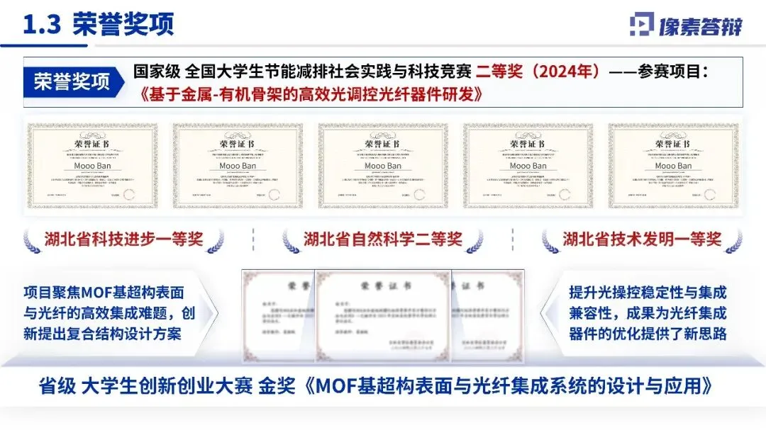开篇直击光纤集成器件领域核心瓶颈(如集成度低、功能单一、性能调控困难),以 “高性能光纤集成器件的设计与制备” 为桥定靶向;中段按 “个人基础 - 学术突破 - 支撑条件” 递进讲成果;结尾升华为光子学领域 “理论 - 技术 - 应用” 新范式,形成 “问题 - 突破 - 延展” 完整逻辑链。