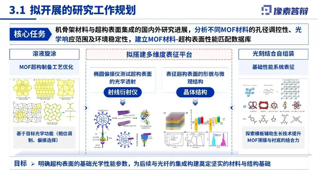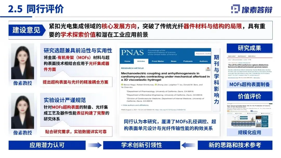 具象化三大核心贡献,用表格清晰呈现核心成果(如器件集成度提升 XX 倍、功能拓展至 XX 种等关键数据);从理论创新、技术突破、应用场景拓展三维对比差异,凸显项目独特优势;研究方法依托材料科学、光子学等成熟理论,经 “理论建模 - 仿真分析 - 实验验证 - 工程应用” 多层级验证,强化成果严谨性。