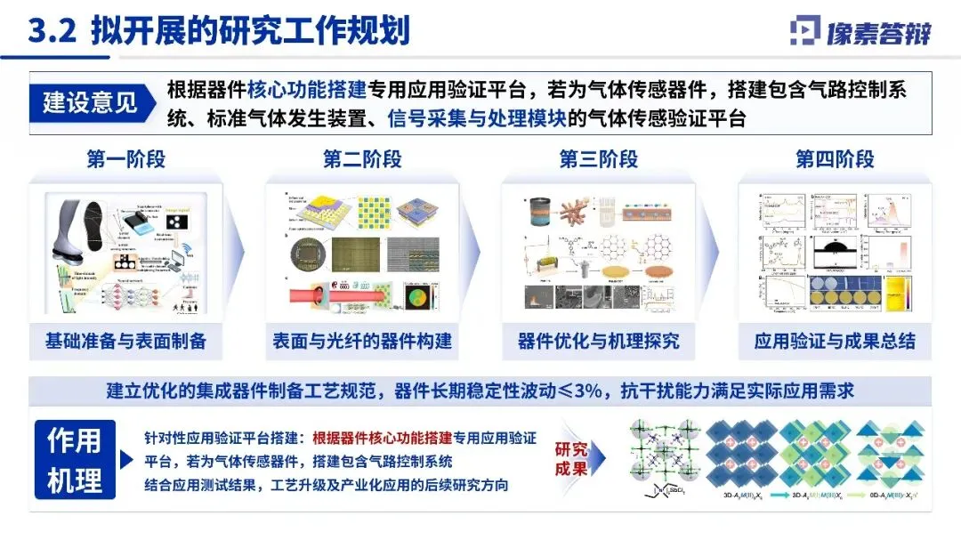 PPT 控制在 18 页左右,适配 12-15 分钟汇报时长;字体≥28 号,以黑白灰为主色调;图表标注数据来源,★标注关键性能指标(如器件响应速度、集成密度、功能多样性);每页≤3 点核心信息,不添加任何动画,全程聚焦学术本质与技术突破。