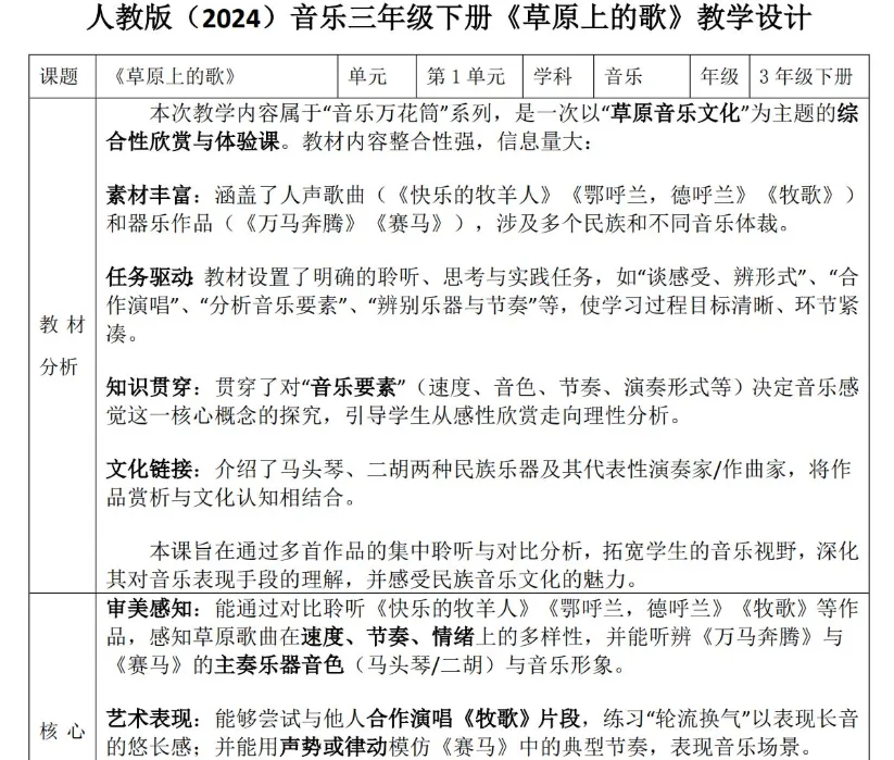 2026新版人音版三年级音乐下册全册表格教案+教学计划【可下载打印】