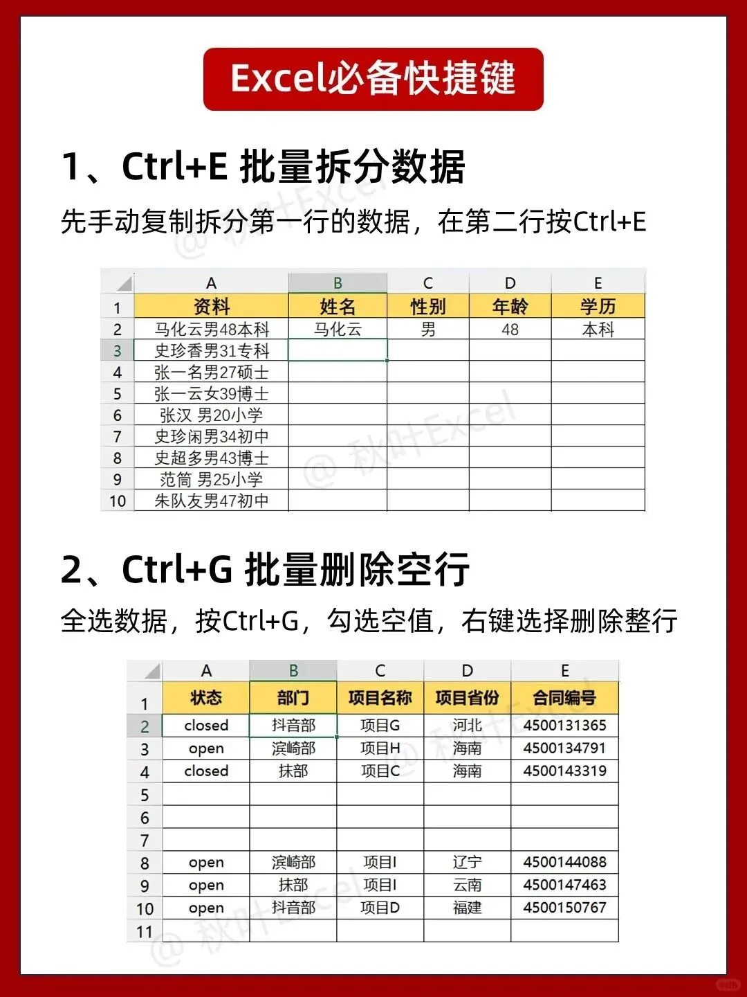 第22天:掌握必备办公快捷键。巩固Ctrl+E快速填充、Ctrl+G定位等效率技巧。
