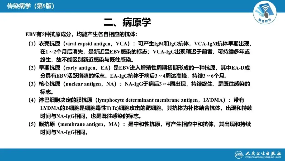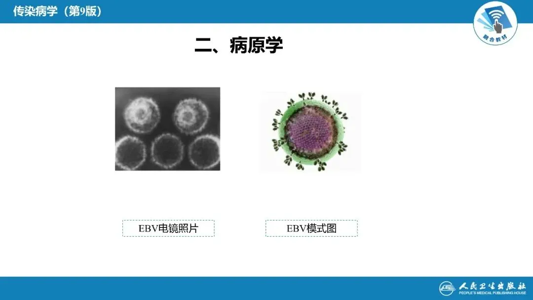 PPT 中不仅有清晰的理论知识框架,还附带 EB 病毒电镜图、异型淋巴细胞血涂片、咽部病变实拍图等专业图解,明确了 VCA-IgM 等特异性抗体的诊断意义、异型淋巴细胞的诊断标准,也梳理了肝脾肿大、咽峡炎等典型表现及脾破裂等严重并发症的处理原则,图文结合拆解易混考点,把临床诊疗和考试重点讲透彻。