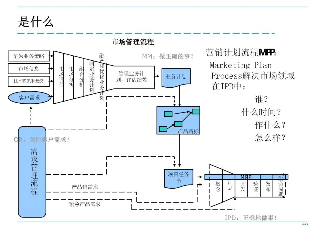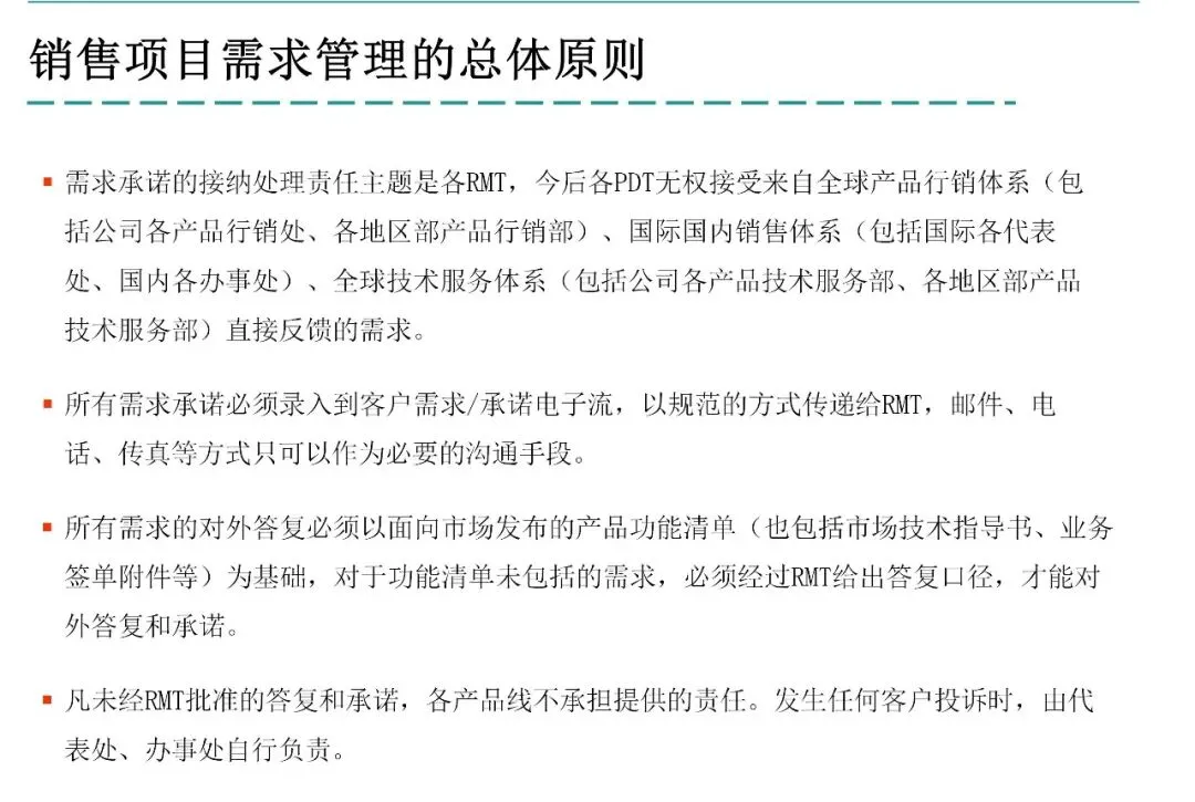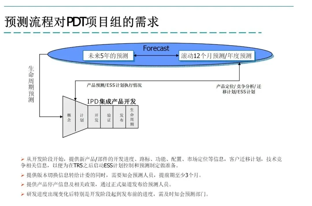 IPD首先通过结构化流程(如市场管理MM、需求管理OR、预测流程)确保“做正确的事”。市场需求不是零散的反馈,而是通过RMT(需求管理团队)的统一渠道收集、分析、分发。CCM(客户需求承诺经理)的设立,则确保从销售项目到产品开发的每一个需求都得到规范的评审与闭环管理,从源头上杜绝随意承诺,保障了产品范围、开发资源和供应链计划的有效性与稳定性。