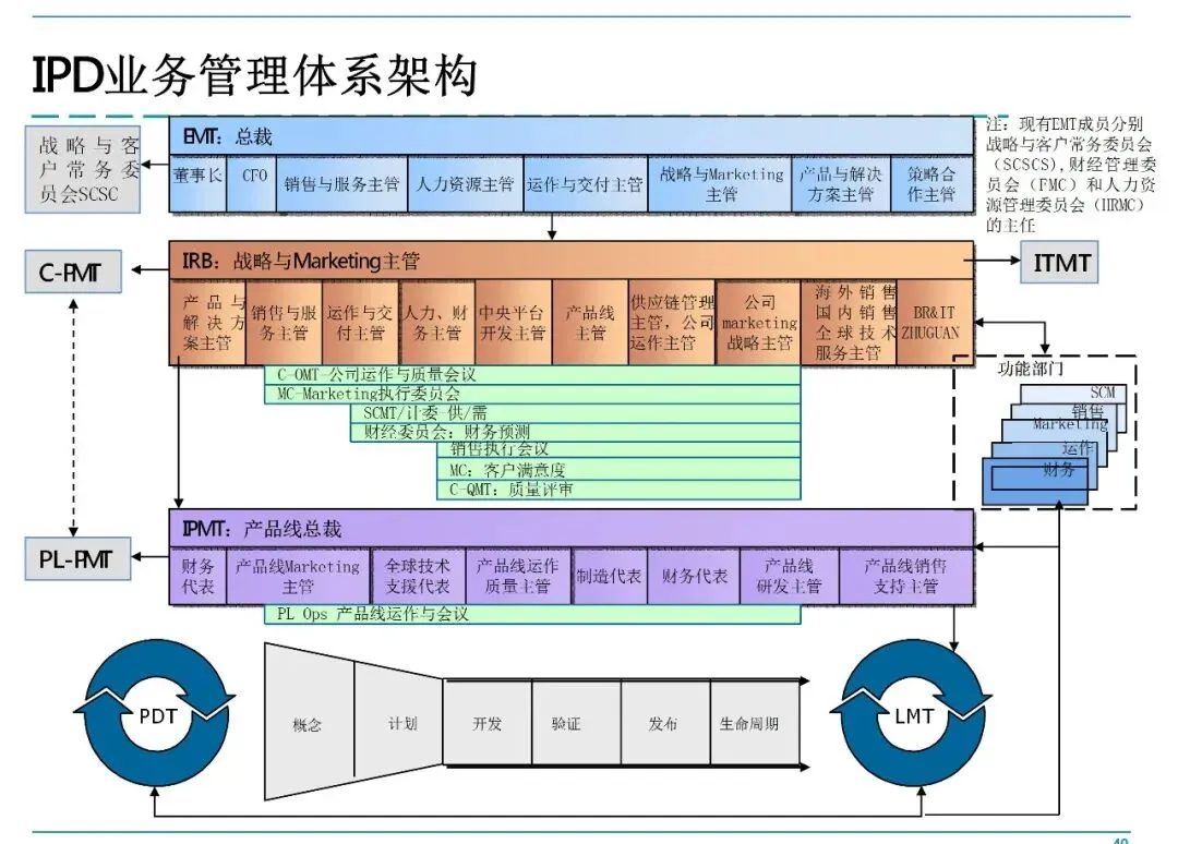 华为IPD(集成产品开发)体系的核心在于打破部门壁垒,构建一个以市场成功和客户价值为核心的端到端业务流程。其成功不仅在于严谨的阶段与决策评审点,更在于它深刻重塑了从需求到交付的价值链条,实现了研发、营销、供应链、采购、制造与服务的深度集成。