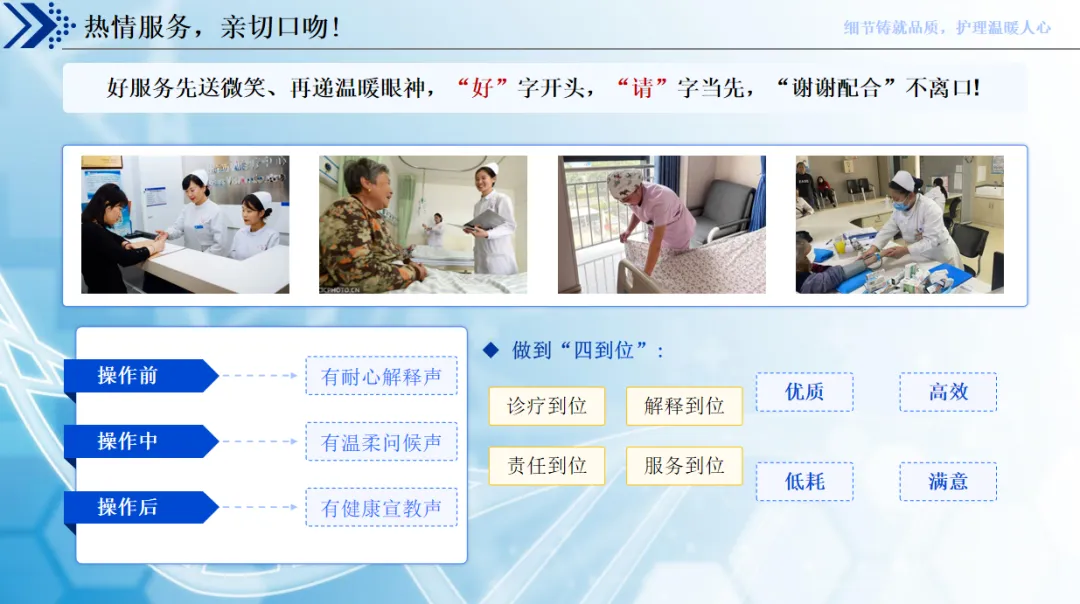 护理工作,于细微处见真情,于细节处显专业。从患者入院的第一眼,到住院的每一天,再到出院的每一句叮嘱,把每个小事做细,把每个细节做暖,用专业的技术、贴心的服务,让优质护理落地生根,这就是我们作为护理人最该做的事。