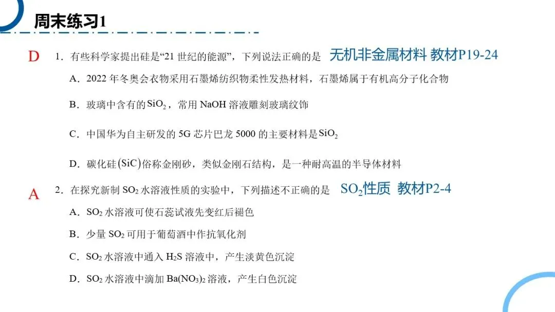 >高中化学必修二ppt | 15 周末练习1
