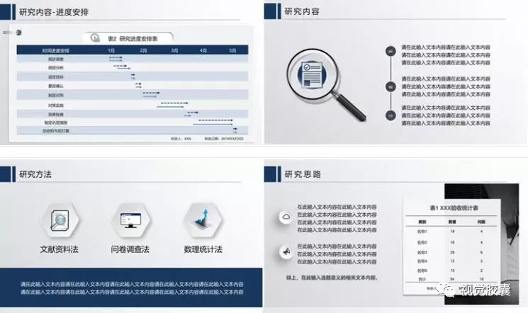同学的PPT内容:上来就是一顿炫酷的封面转场,图表文字一页页花样展示。