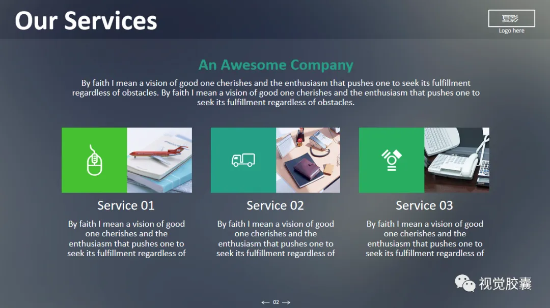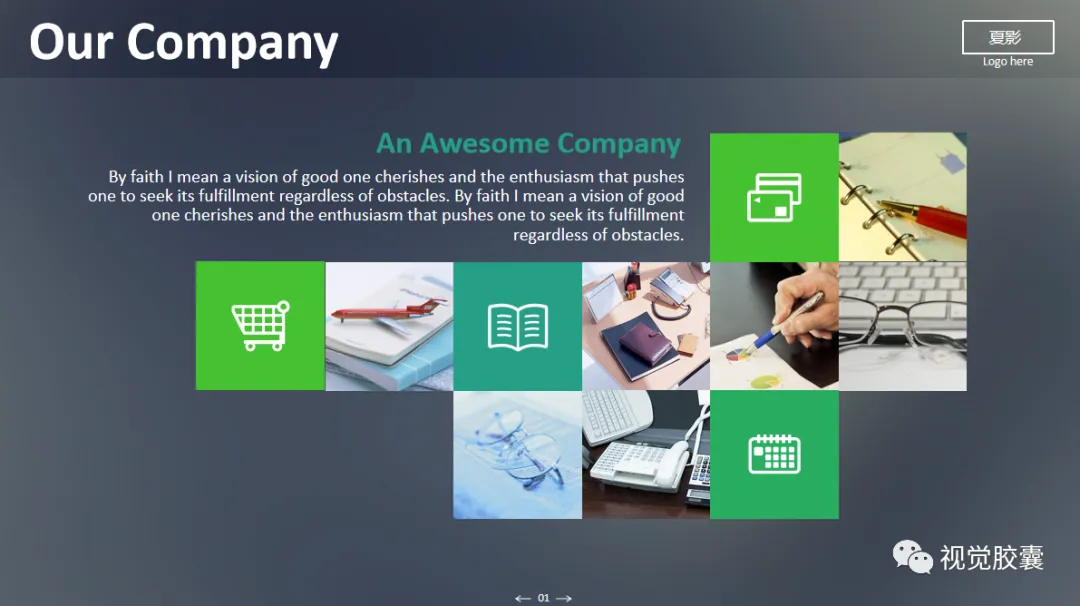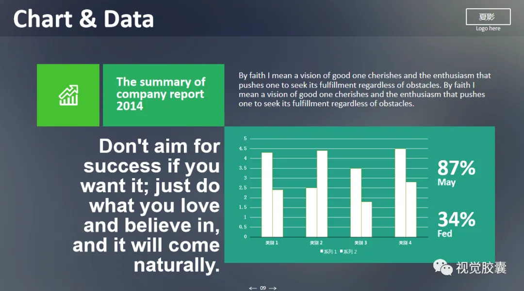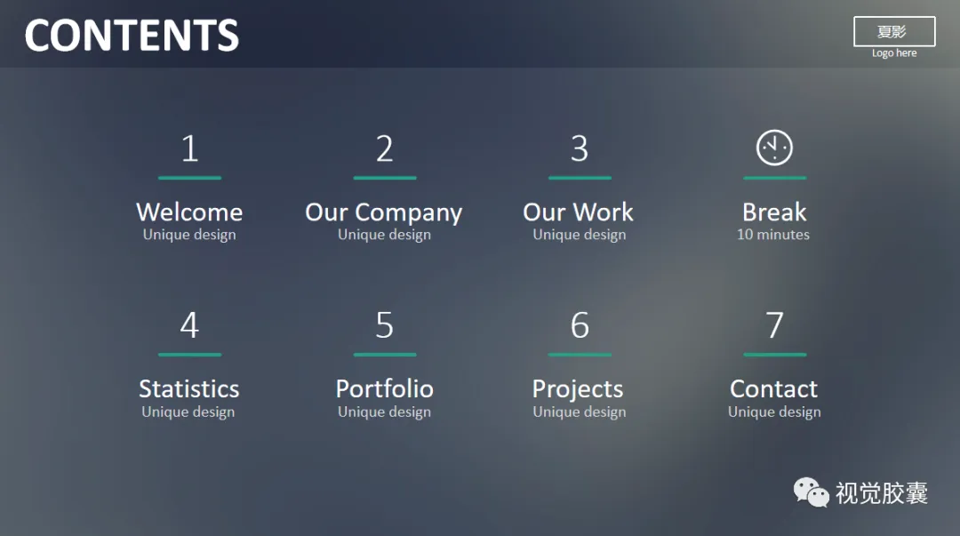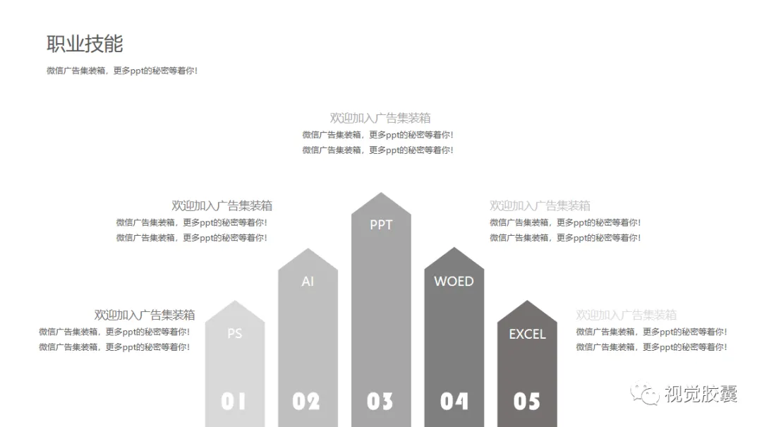这类使用场景中PPT内容主要体现为:文字精简,逻辑清晰,适合投影。