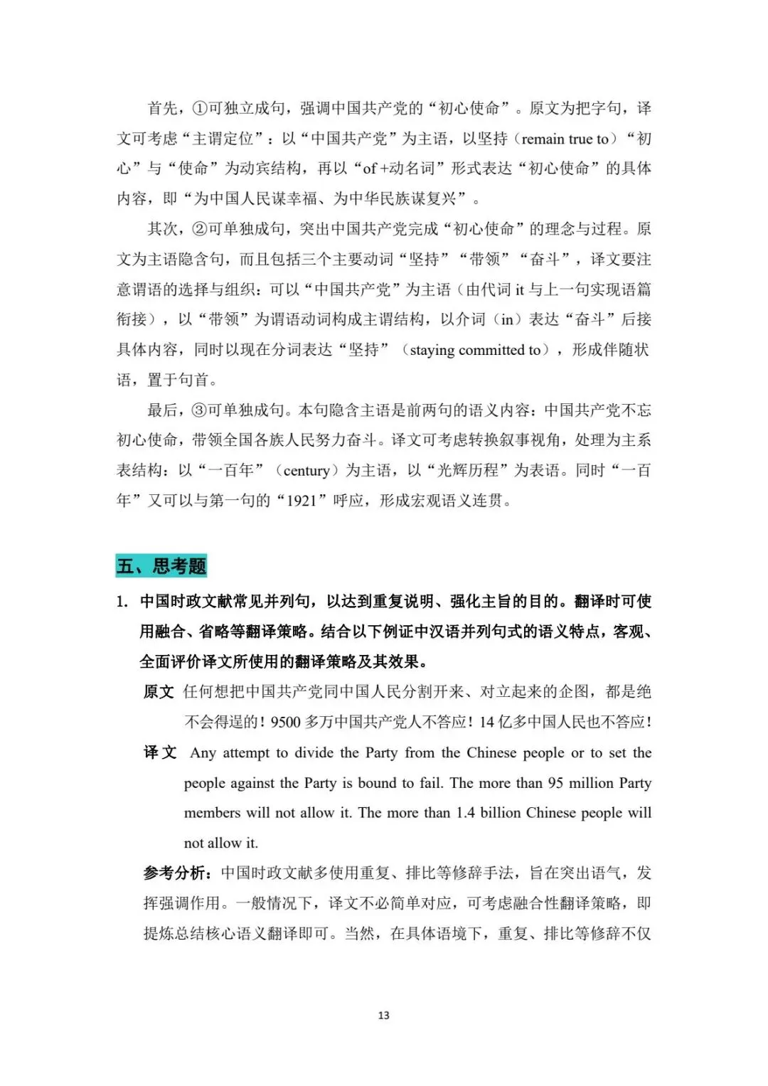 >理解当代中国汉英翻译教程:教材答案+PPT课件(电子版)