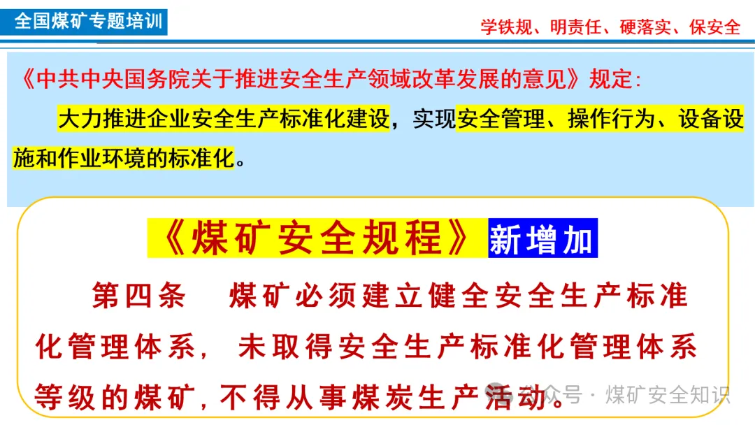 PPT | 《新版煤矿安全生产化标准化管理体系》达标要点解析(宁尚根 副教授)