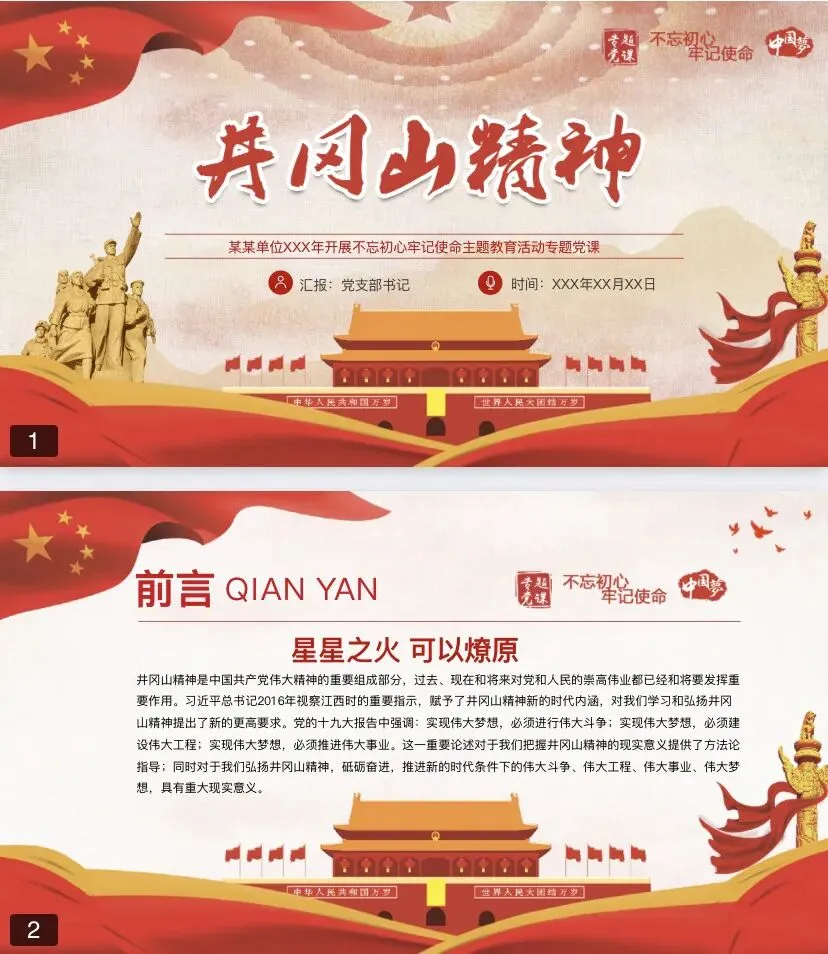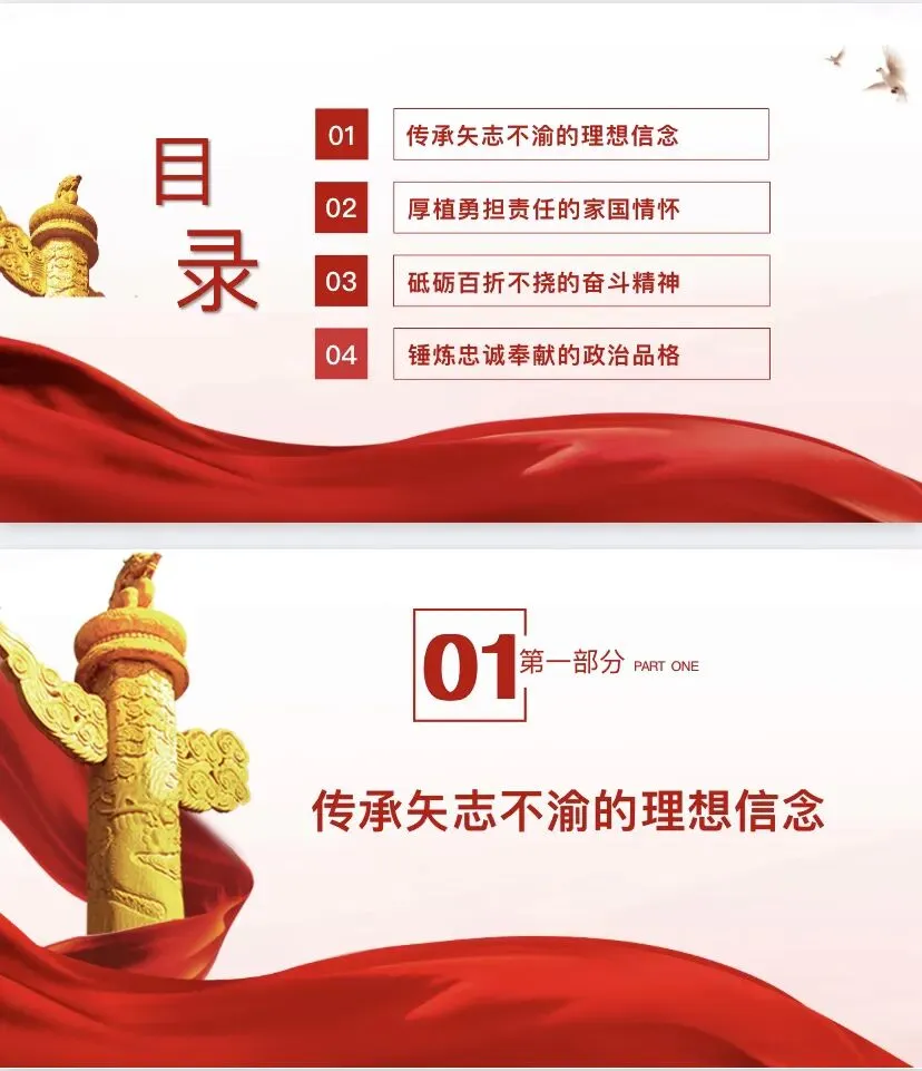 红色精神教育重要讲话合集PPT模版(可免费下载保存)