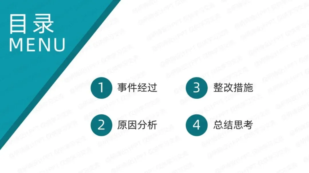 对整个事件进行阐述说明,是汇报的第一个内容。只有先了解了事件的起因我们才能更好的去进行原因分析。