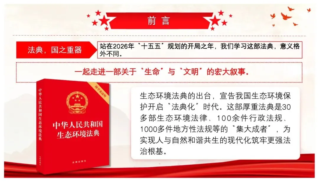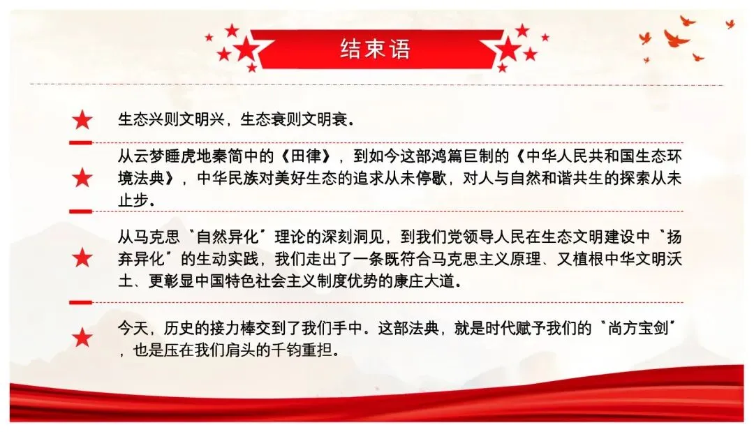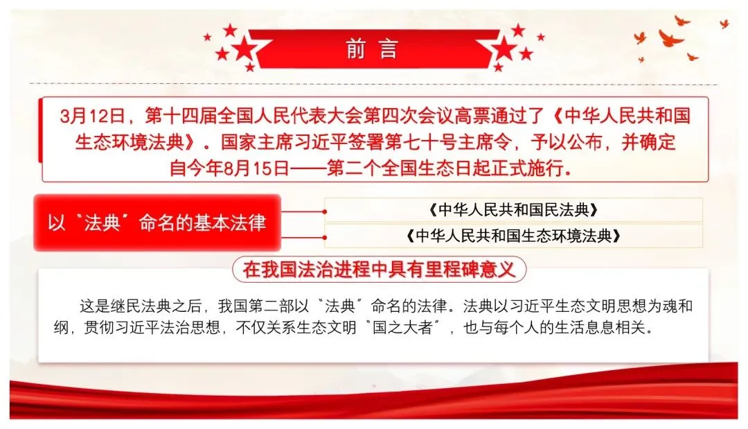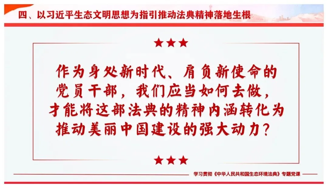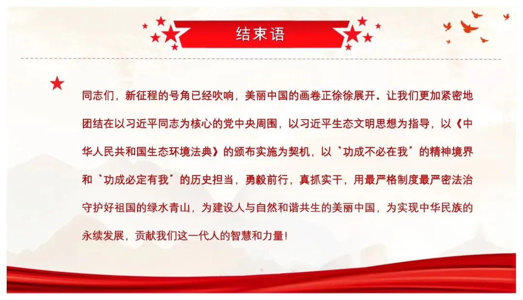>【精选党课PPT+讲稿】以法治伟力护佑绿水青山 用使命担当绘就美丽中国——深入学习贯彻《中华人民共和国生态环境法典》专题党课讲稿