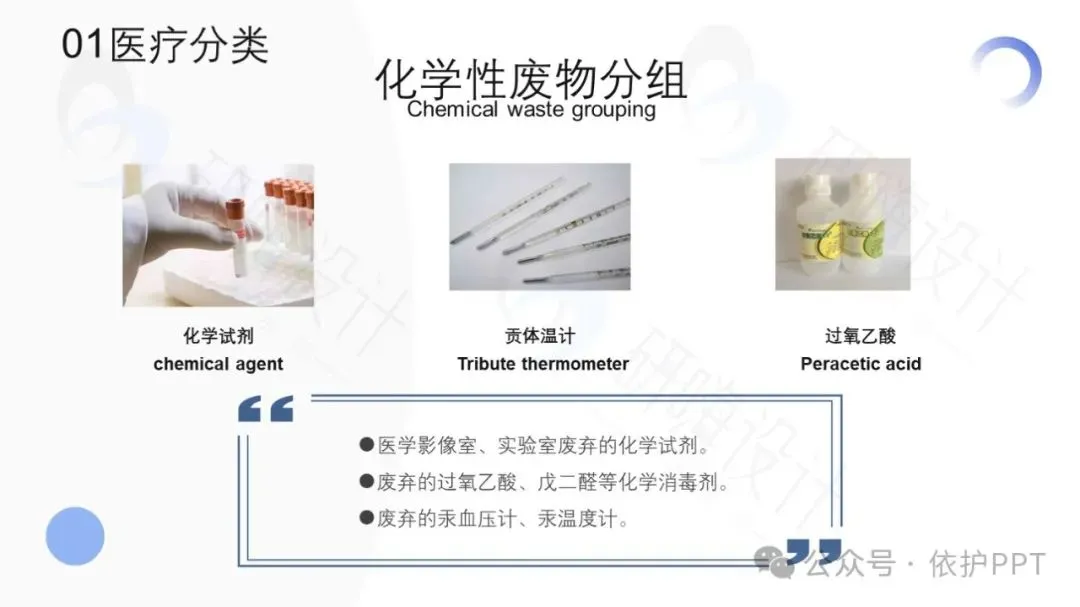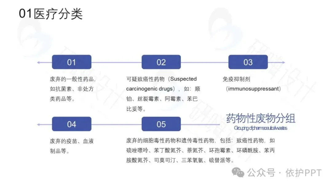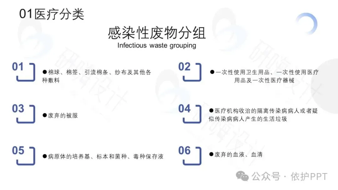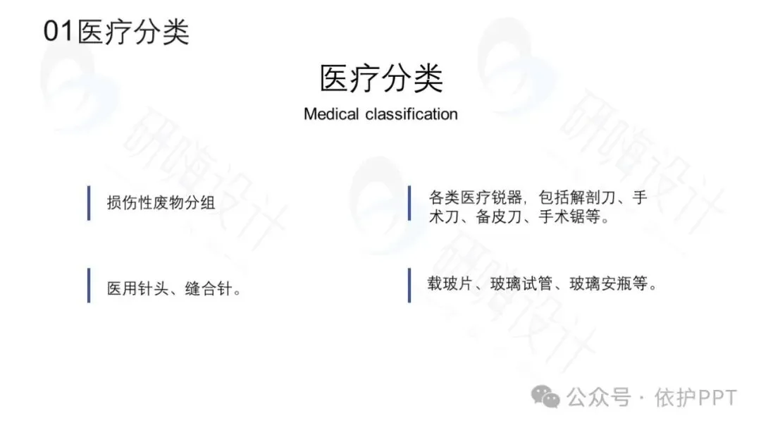 医疗废物主要分为四类:感染性医疗废物、化学性医疗废物、尖锐器械和其他医疗废物。