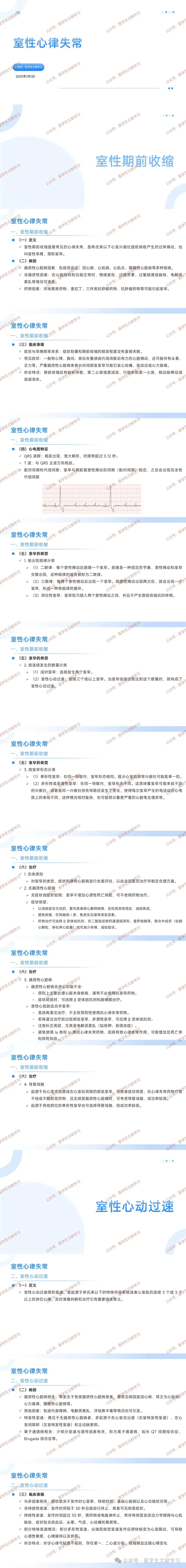 类型:按出现规律、连续数量、形态可分为多种类型,如二联律、单形性室早等。