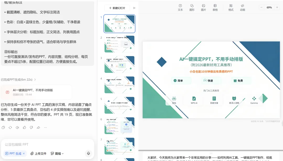 如果你是学生党、职场新人,或只是想快速做一份简洁PPT,豆包是最省心的选择。