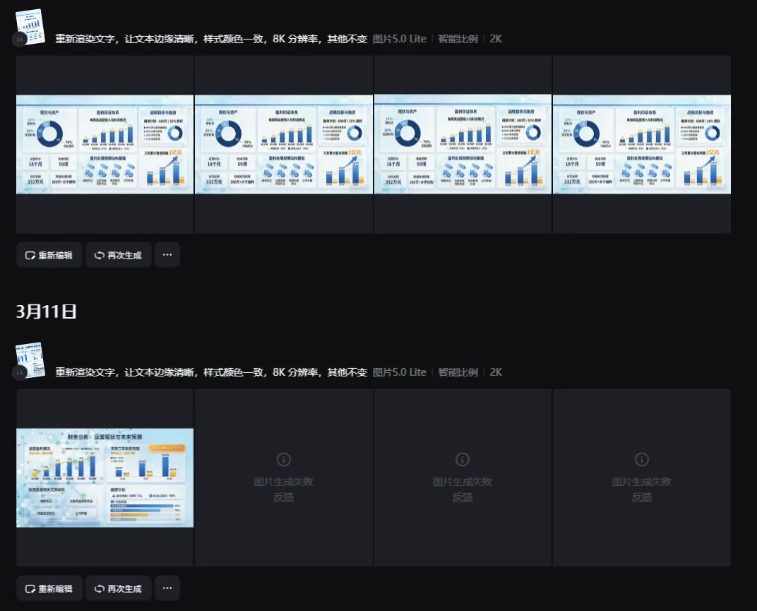 适合一些中文书法标题字仿写,logo,简约元素批量生成等简单快速需求,豆包好在生成速度快和数量高,不过豆包也可进行中文字体的校正和修复,不过相比之下,nano2对中文字体的修复度会更好一些,即梦官网的Seedream5.0相比之下也会好些,但是即梦极易遇到大量排队的情况。原图虽然都带水印,不过完全可以直接选择向下扩图或者PS智能修复一下,不得不说,基础的扩图,类似图,高清化豆包做的相对来说还算较快较好的。