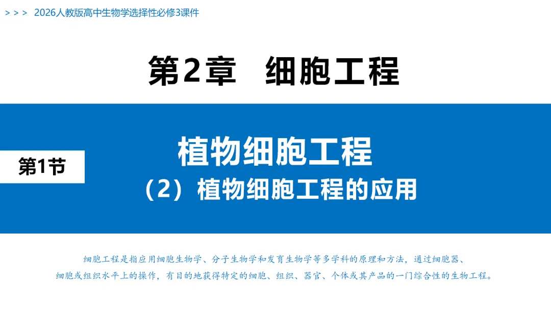 >【PPT课件】高中生物学选择性必修3:§2.1 植物细胞工程(2)植物细胞工程的应用 | 新课课件(2026版)