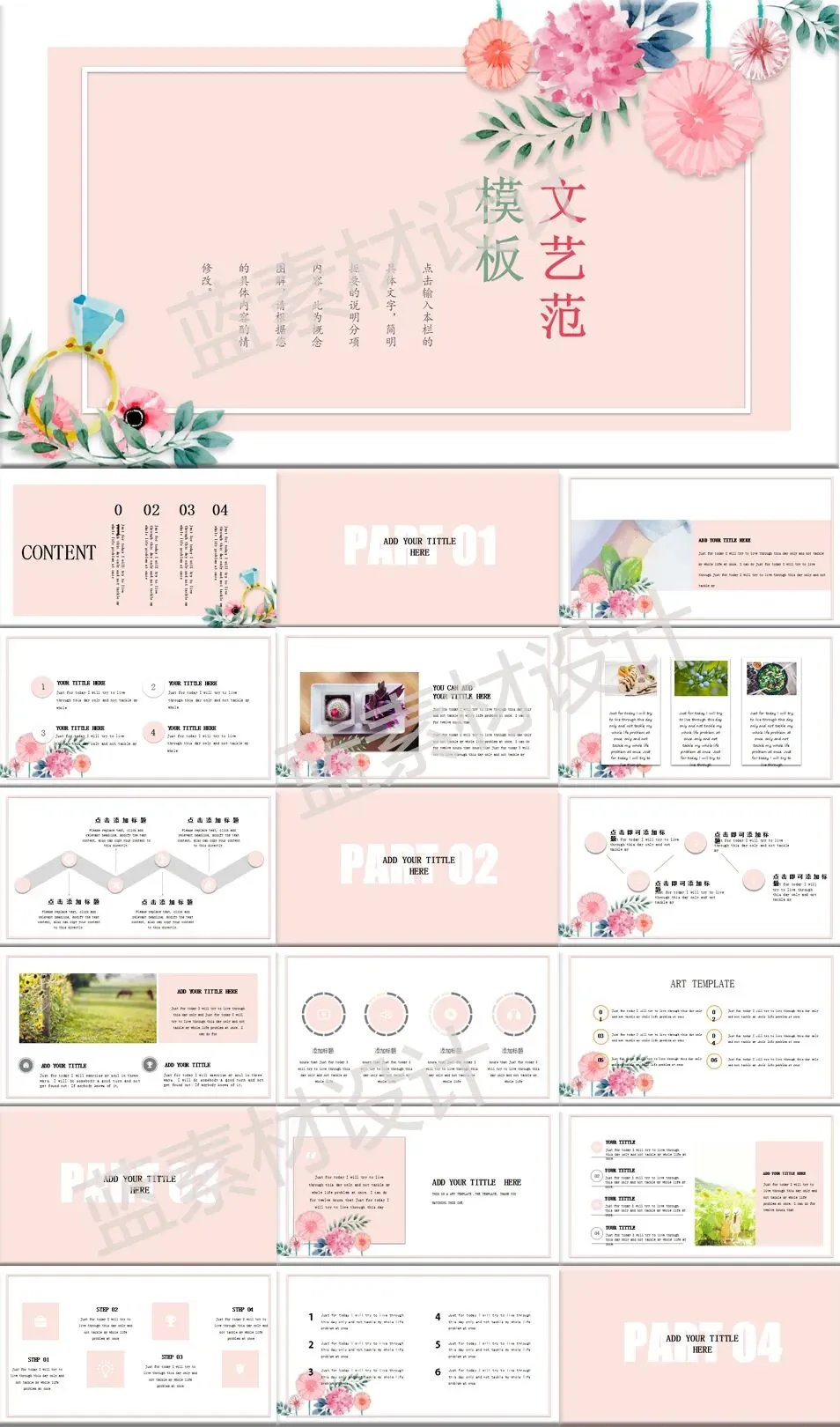 1.本文内容分享【92套粉色风格PPT模板】