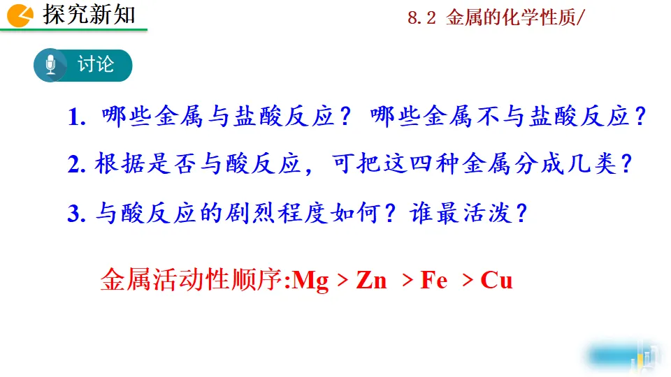 当前位置:首页>PPT>课题2金属的化学性质PPT教学课件第八单元金属和金属材料人教版化学九年级下册