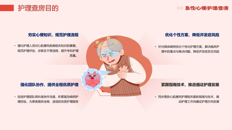 这份《急性心梗护理查房》PPT,结构严谨、内容详实、逻辑清晰,完美诠释了**“循证护理”**在临床工作中的应用。
