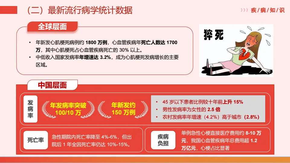 1. 紧跟前沿,数据详实查房的第一部分并非枯燥的说教,而是基于最新的流行病学数据和发病机制。从冠状动脉的粥样硬化到血栓形成,再到心肌坏死的病理生理过程,课件通过直观的图解,夯实了护理人员的理论基础。