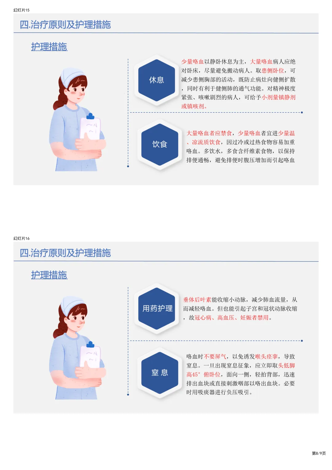 临床干货: PPT里还对比了“少量咯血”和“大咯血”的饮食区别,一个是温凉流质,一个是禁食,这个分寸拿捏得死死的。