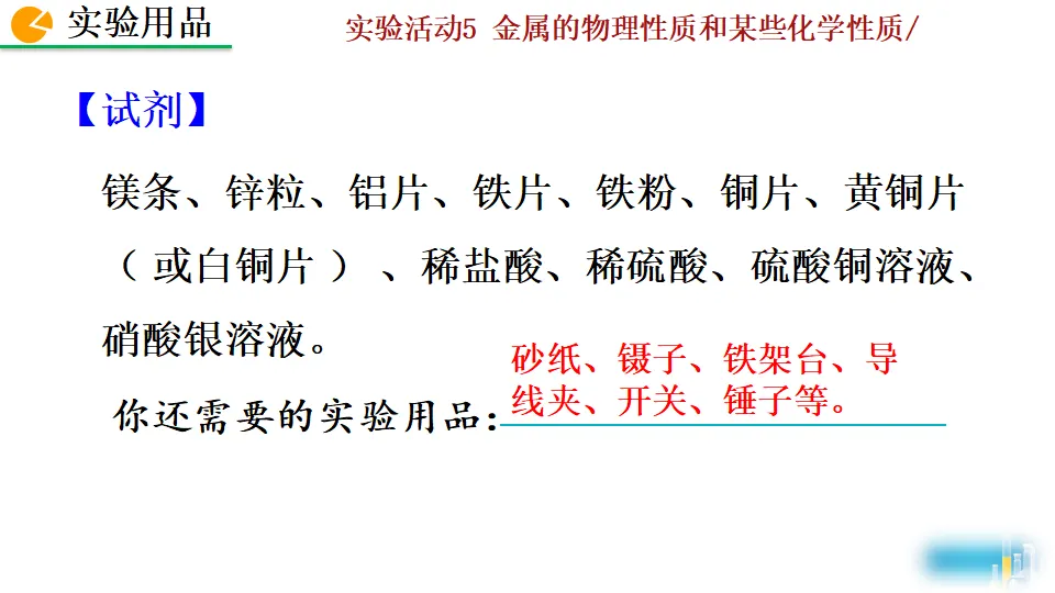 当前位置:首页>PPT>实验活动4金属的物理性质和某些化学性质PPT教学课件金属和金属材料人教版化学九年级下册