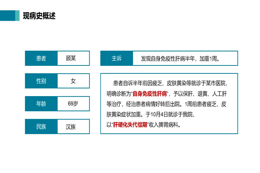 🍎内容:自身免疫性肝硬化病例讨论-医护PPT模版