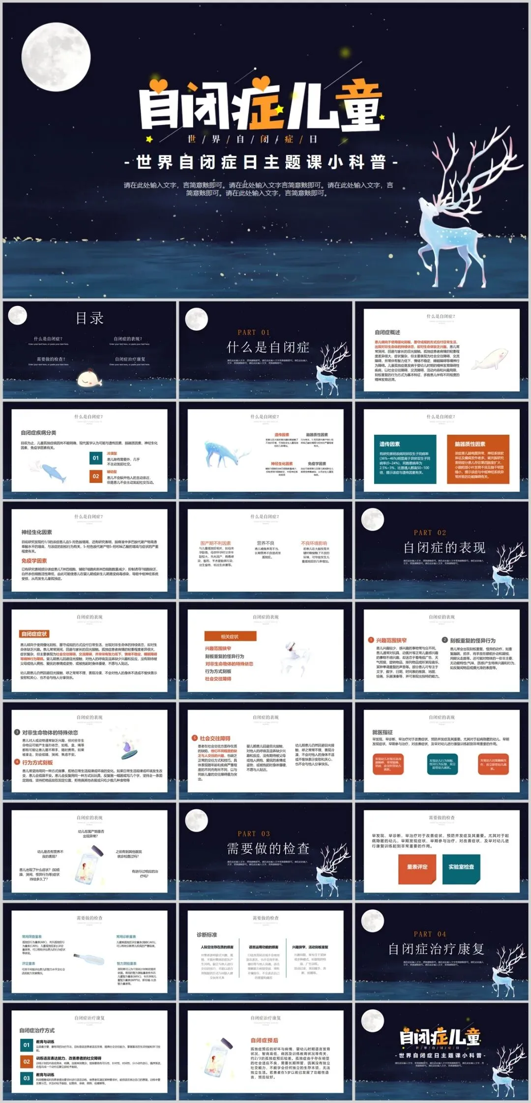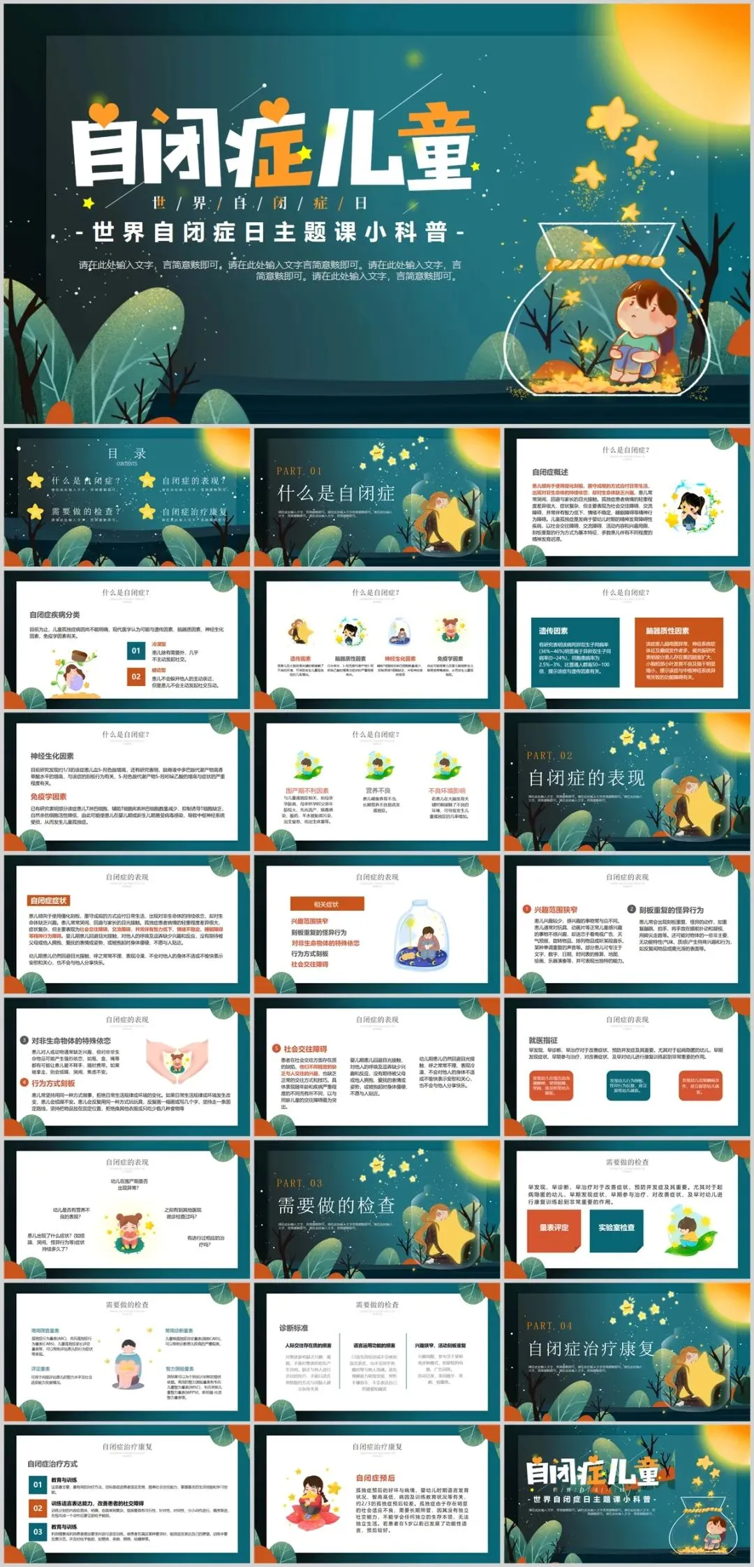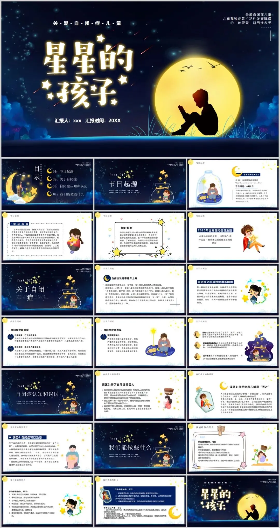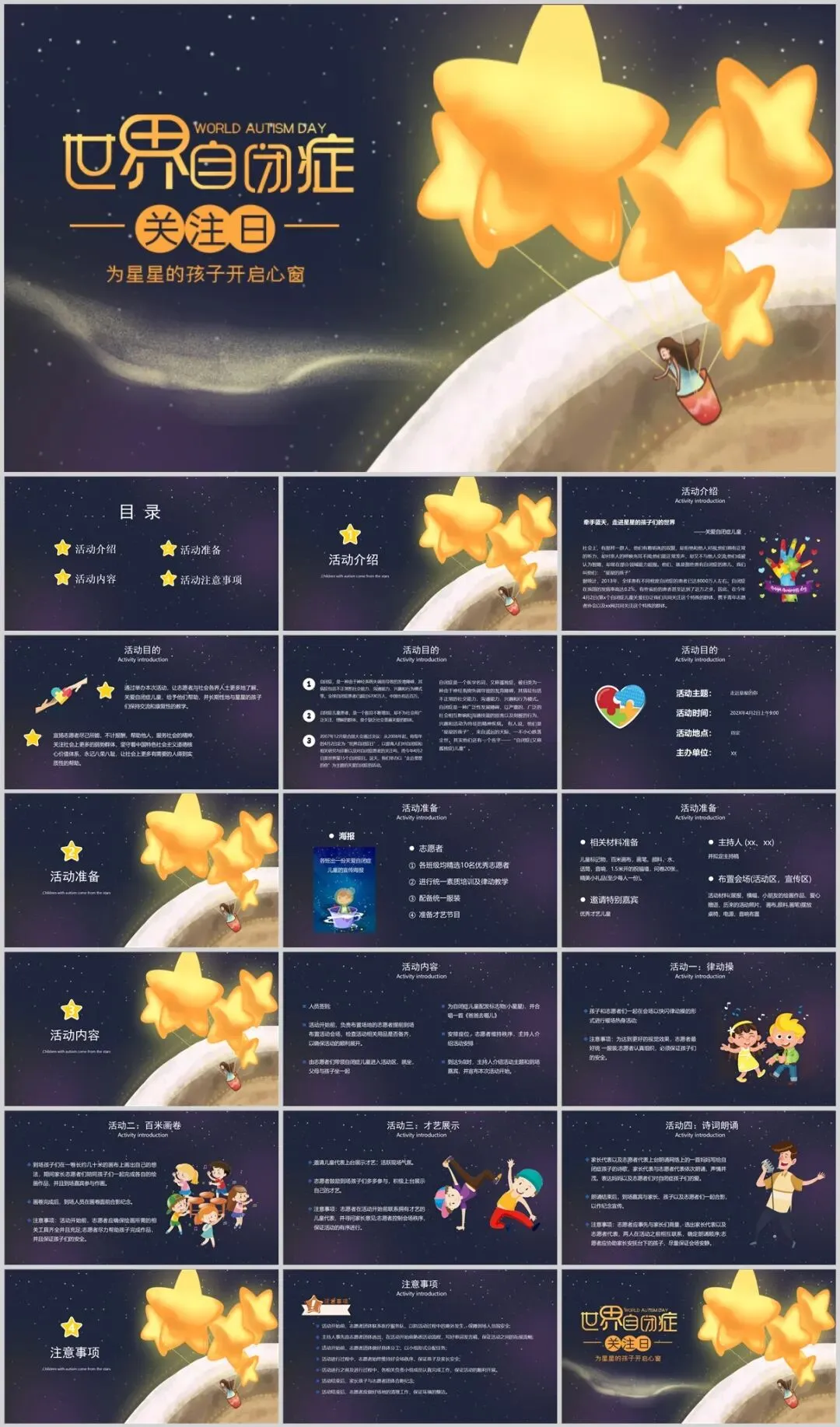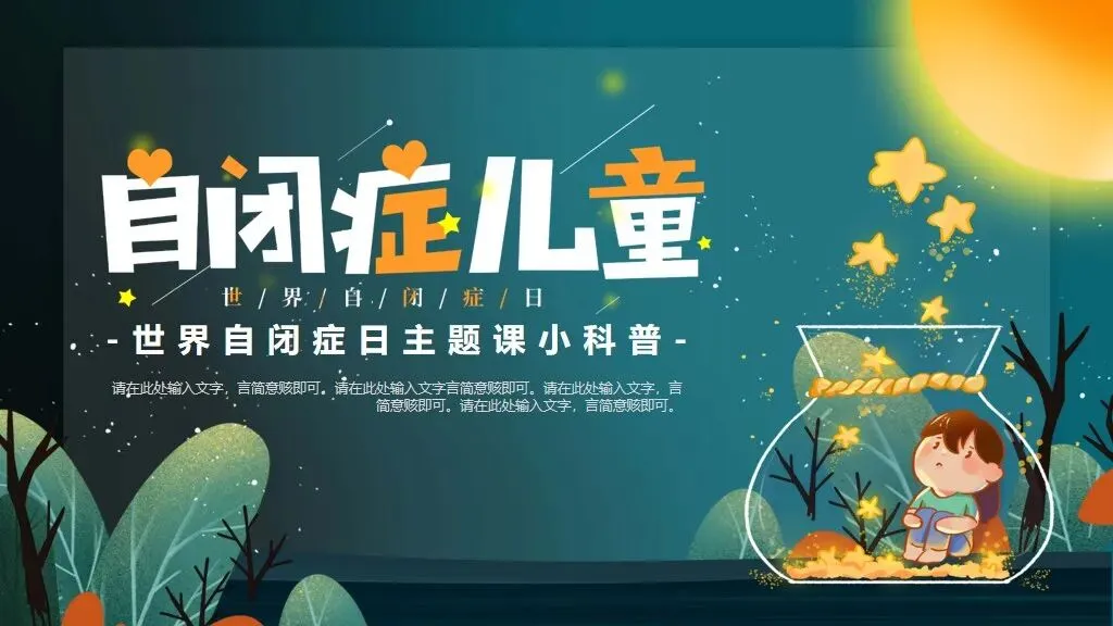 关注自闭儿童,7套世界自闭症关注日主题PPT,守护星星的孩子校园活动课件模板