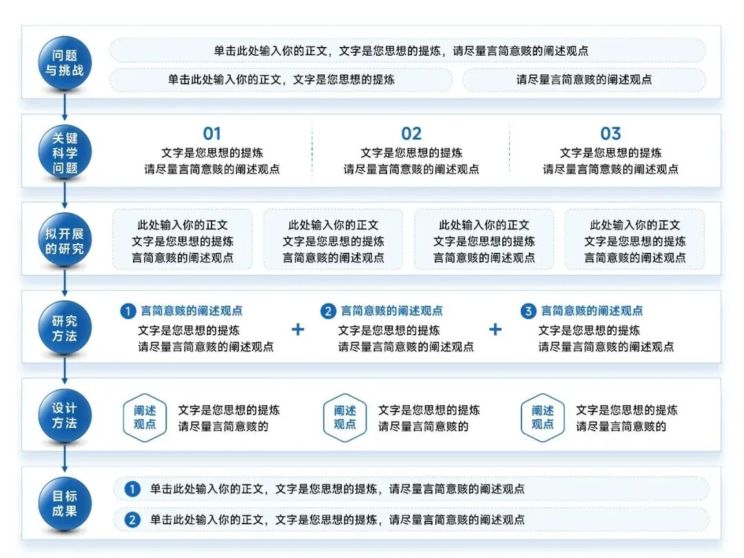 建议 :每个核心方法单独一页,每页控制在3-5个关键词+示意图,让评委5秒内理解你的技术路径