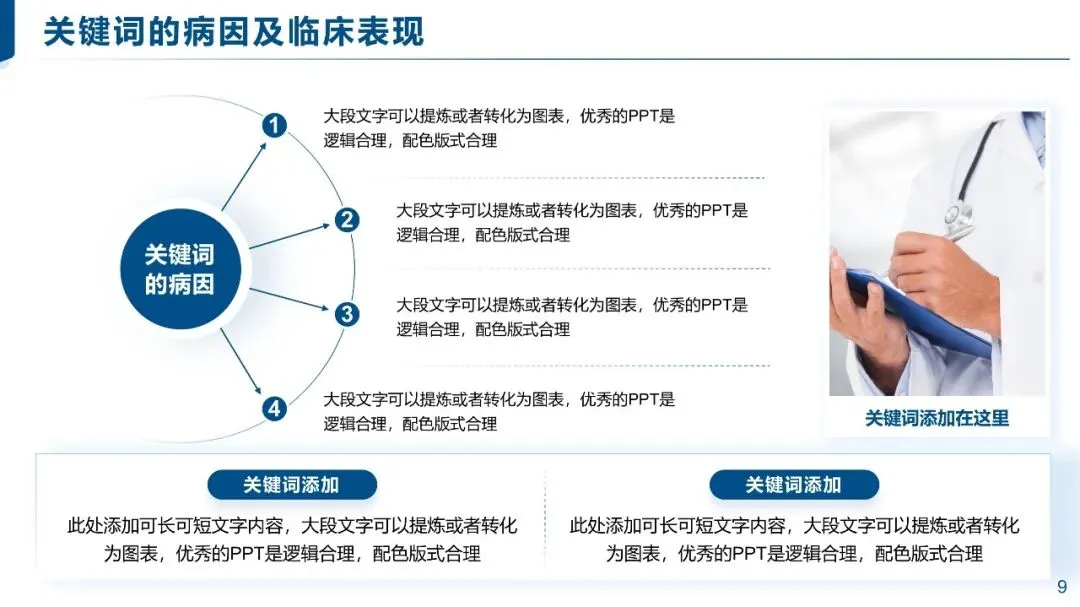 第2-3页(背景) :从临床痛点切入,用数据说明问题的严重性(如“XXX疾病5年生存率不足20%”)