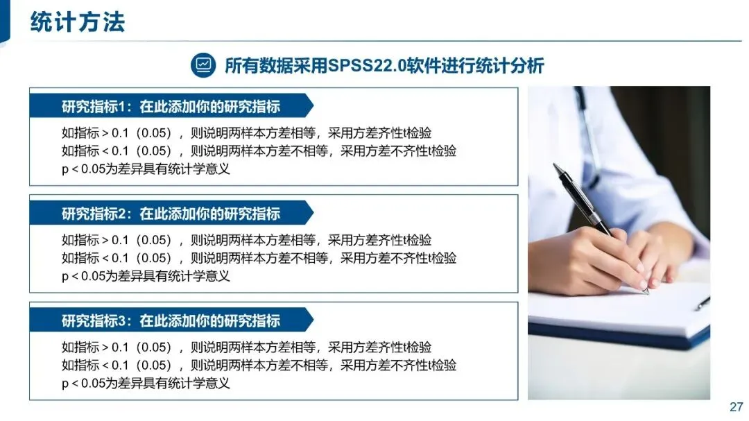 统计学方法 :单独一页列出使用的统计软件、检验方法、显著性标准