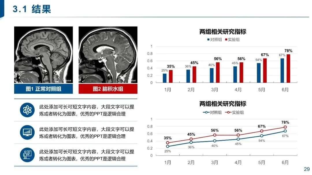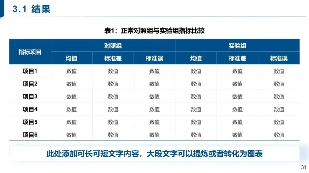 结果呈现 :每页展示1-2个核心结果,每个图表下方必须加一句话结论