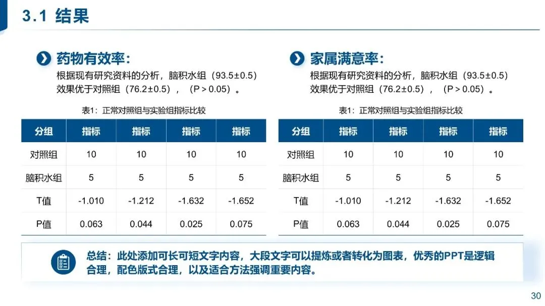 切忌 :展示所有原始数据,只挑选最能支撑结论的3-5个核心结果