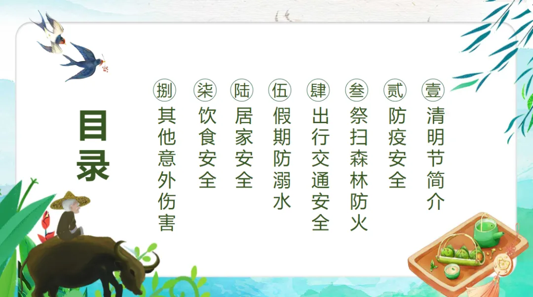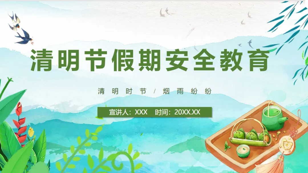 本文分享的是清明节假期安全教育主题班会PPT模板(免费领取)