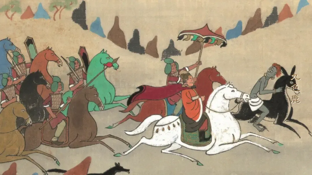 利欲熏心的调达走上前去,接下了皇榜,进宫告密,他说,自己知道九色鹿在哪里。
