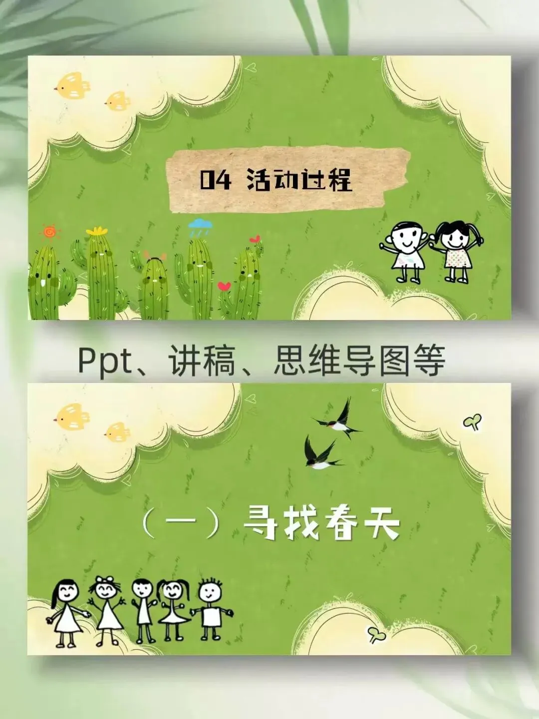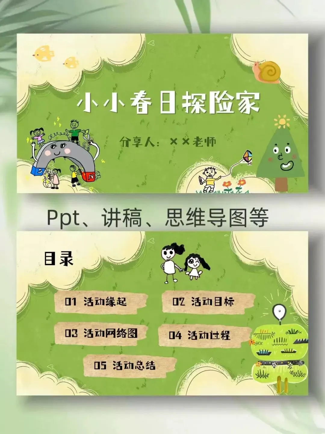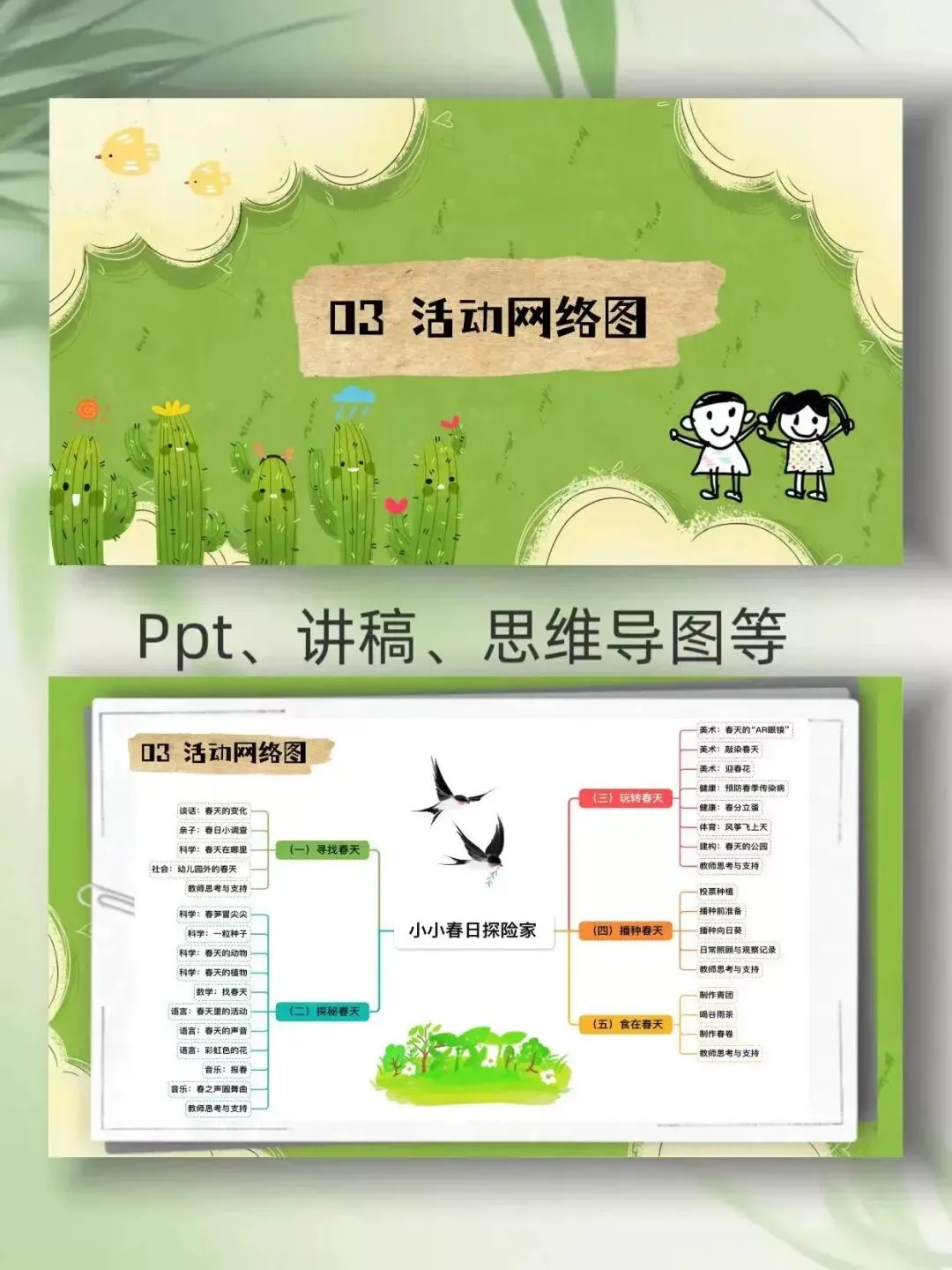 >幼儿园班本课程《春日探险家》PPT+文稿+思维导图