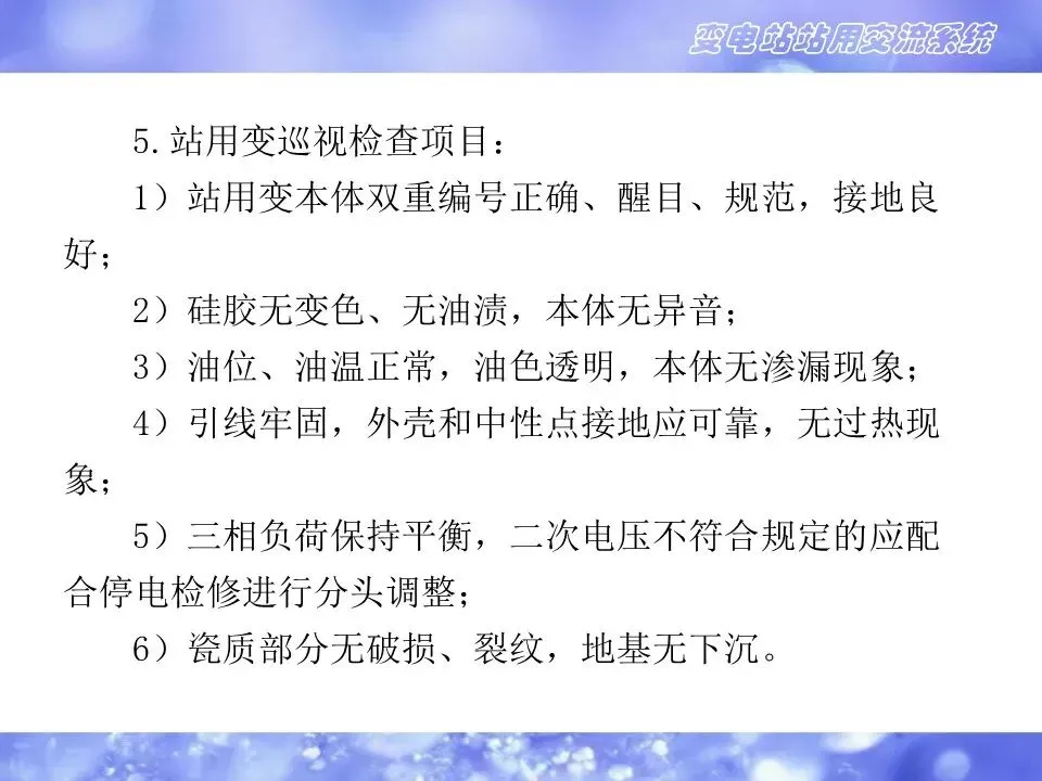 5.站用变巡视检查项目: