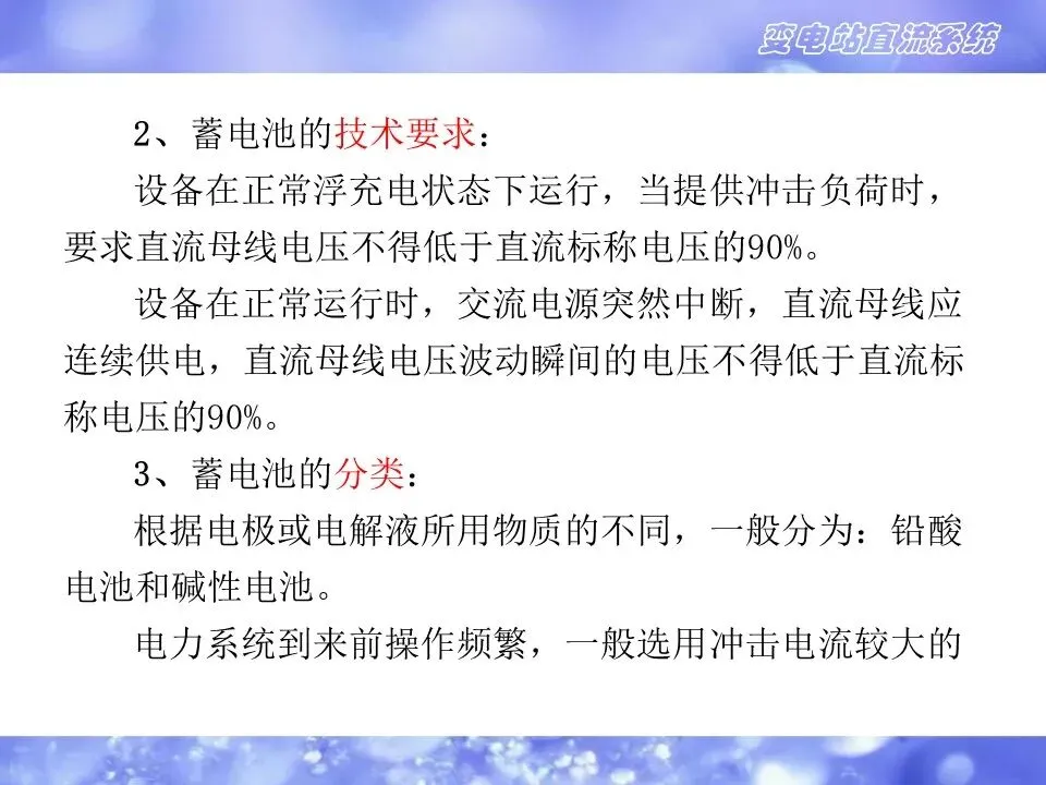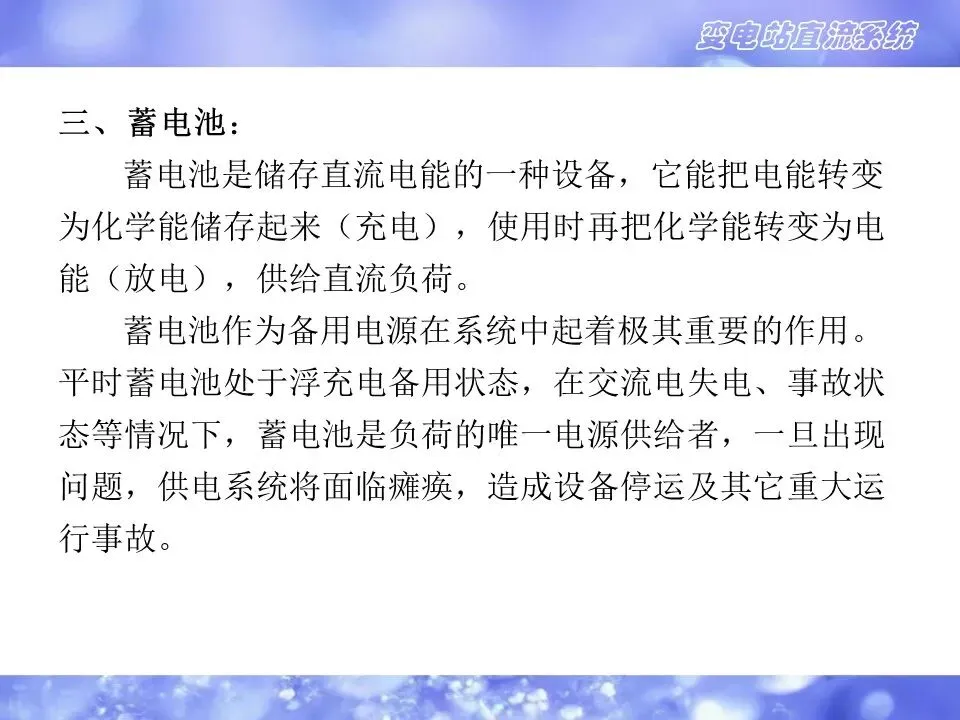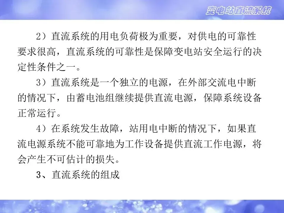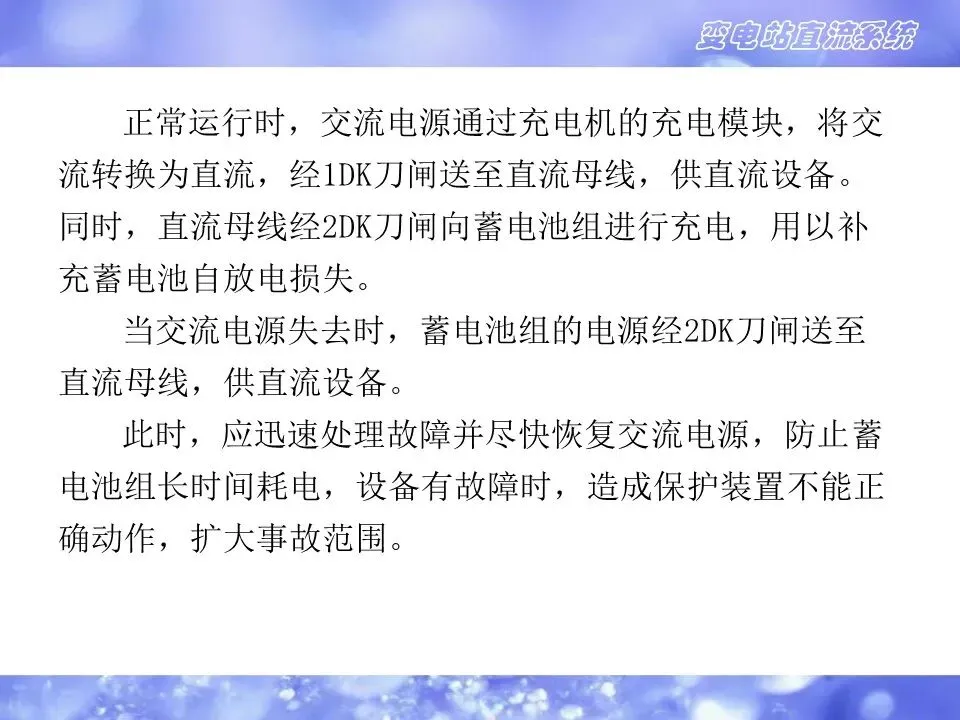 2)直流系统的用电负荷极为重要,对供电的可靠性要求很高,直流系统的可靠性是保障变电站安全运行的决定性条件之一。