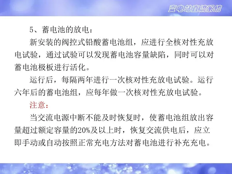 4)在系统发生故障,站用电中断的情况下,如果直流电源系统不能可靠地为工作设备提供直流工作电源,将会产生不可估计的损失。