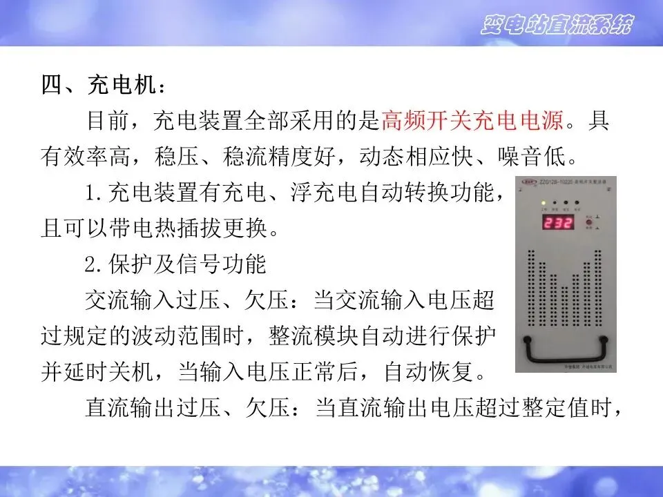 3)直流系统是一个独立的电源,在外部交流电中断的情况下,由蓄电池组继续提供直流电源,保障系统设备正常运行。