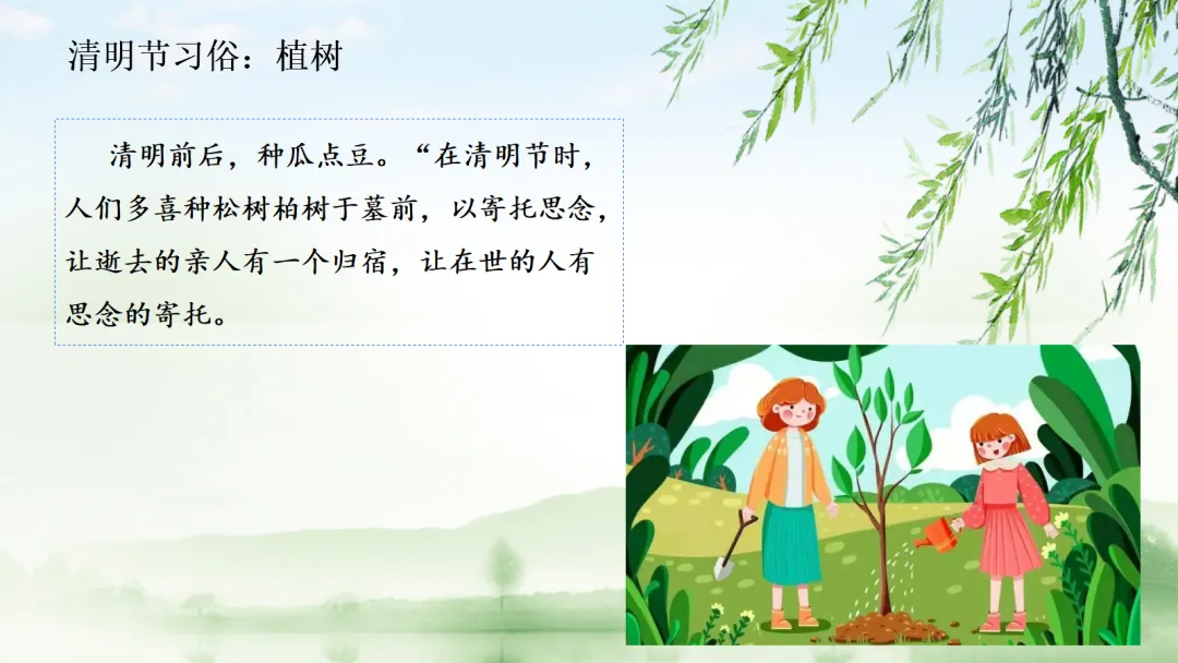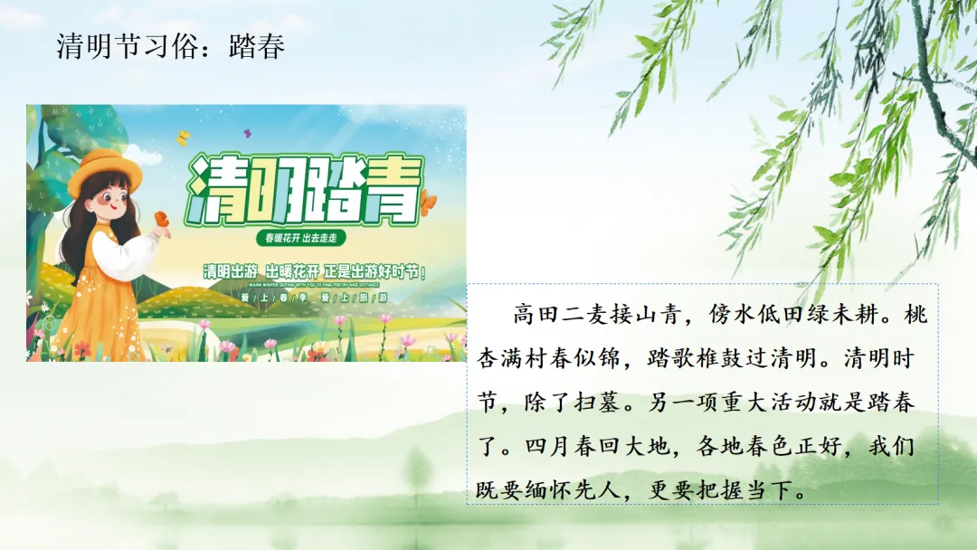 清明,是二十四节气之一。此时斗指丁,气清景明,万物皆显。古人云:“清明前后,种瓜点豆。”这不仅是农耕的号角,更是大自然赐予我们的生机。在这一天,我们有着独特的习俗:扫墓祭祖,是“慎终追远,民德归厚”的礼敬;踏春游玩,是“四野明净,生机盎然”的拥抱。我们还会插柳辟邪、放风筝祛晦、种松柏寄思。这些习俗告诉我们,清明不仅是哀思的时刻,更是新生的开始,它教会我们在缅怀中珍惜当下,在追思中感悟生命。