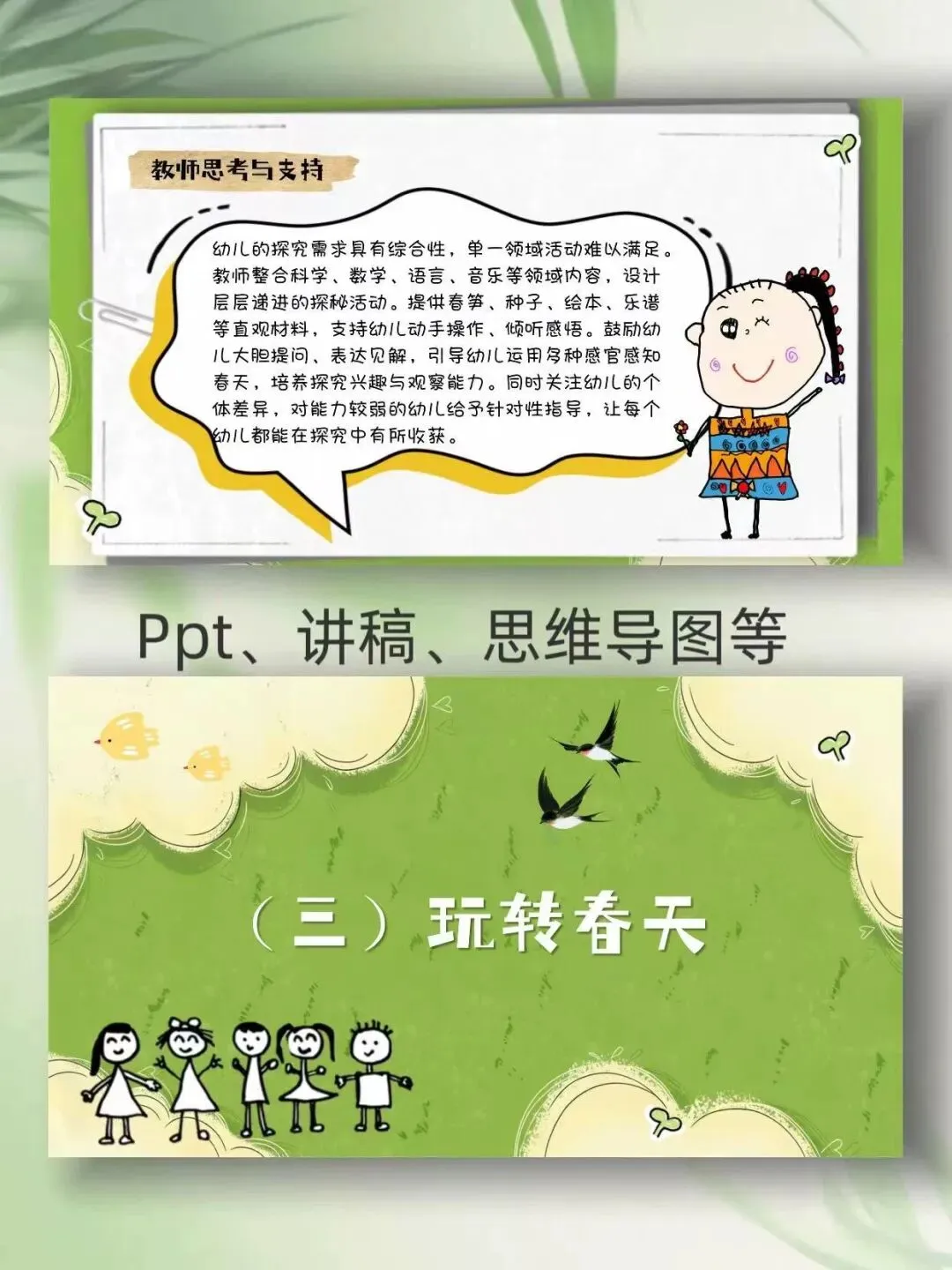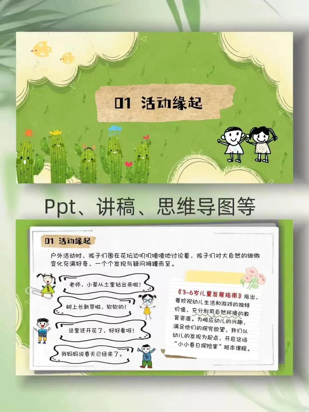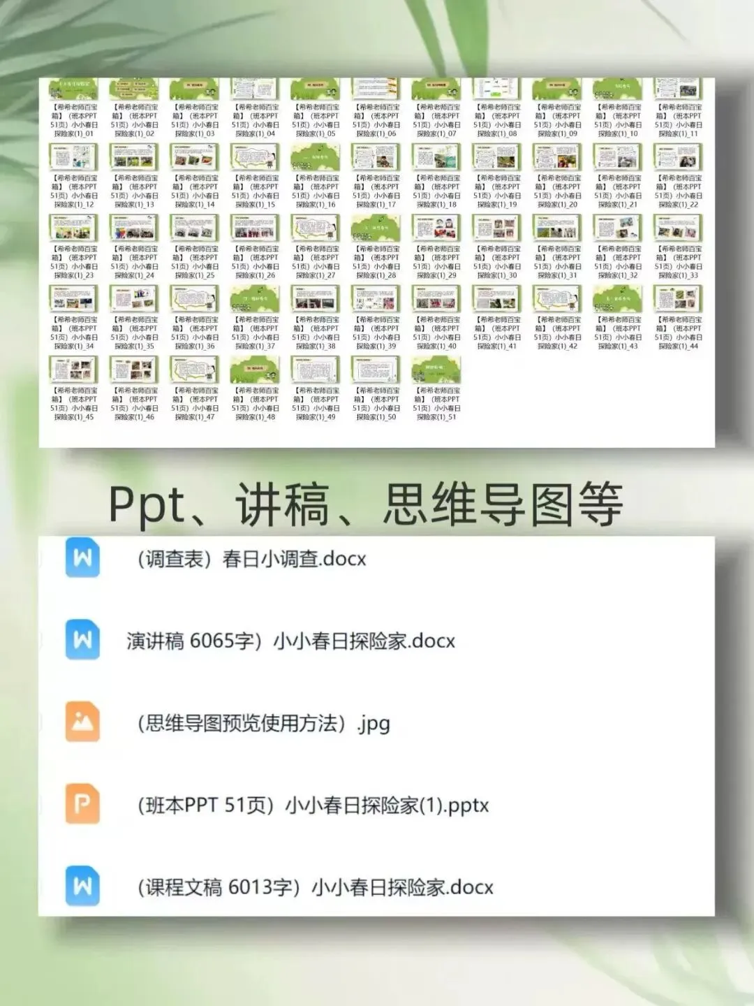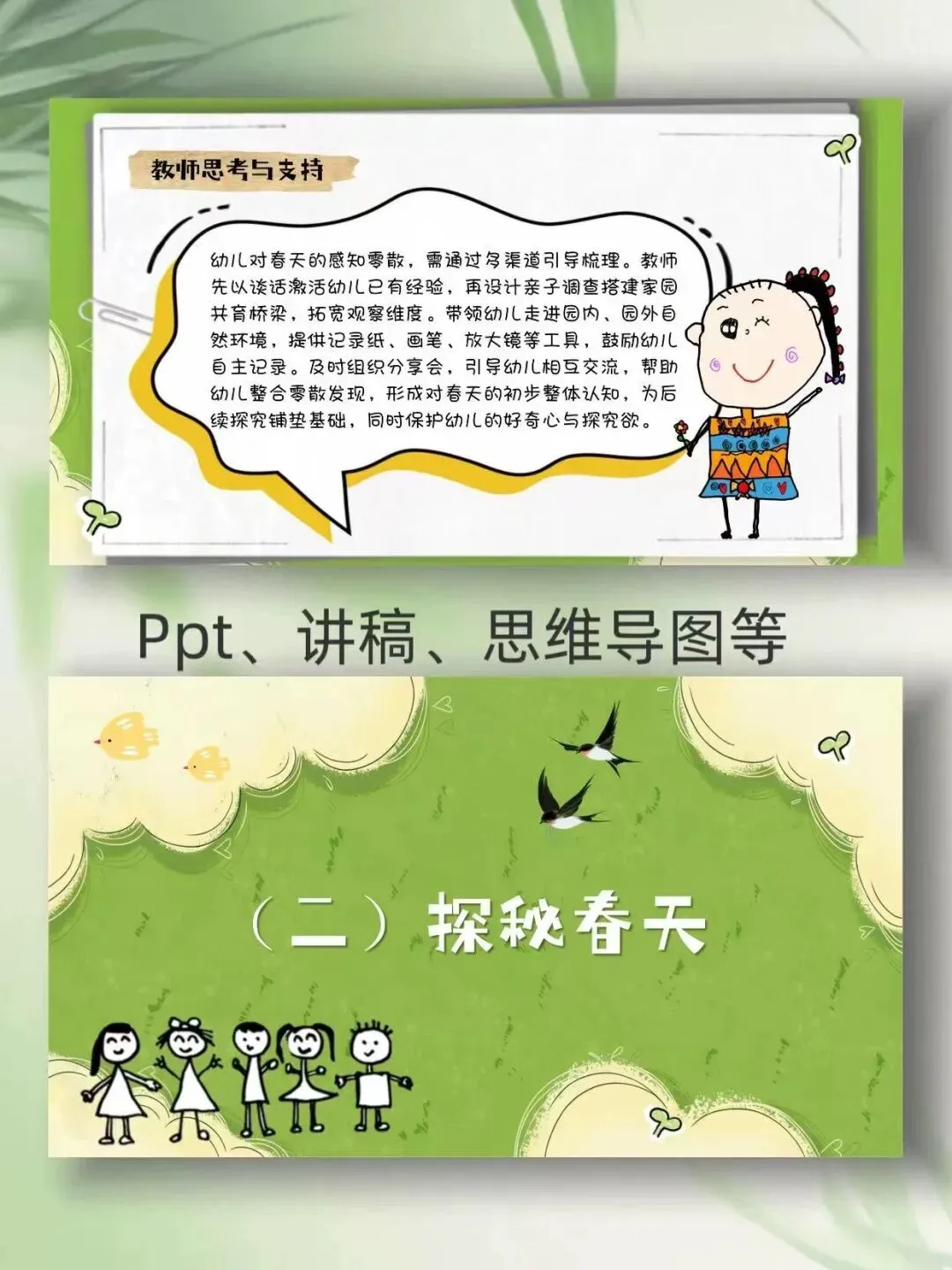 >幼儿园班本课程《春日探险家》PPT+文稿+思维导图