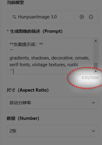 实测的时候我发现一个坑:国内一些免费文生图模型对提示词有字数限制。